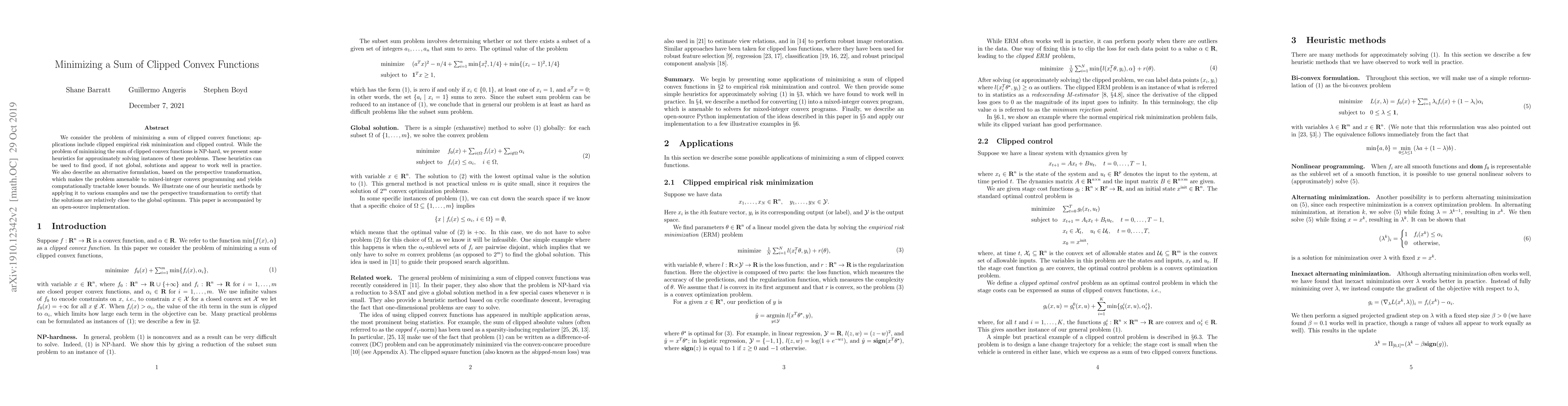 This paper addresses the NP-hard problem of minimizing a sum of clipped convex functions, presenting heuristics for finding approximate solutions and an alternative formulation using mixed-integer convex programming for tractable lower bounds. An open-source implementation accompanies the work.