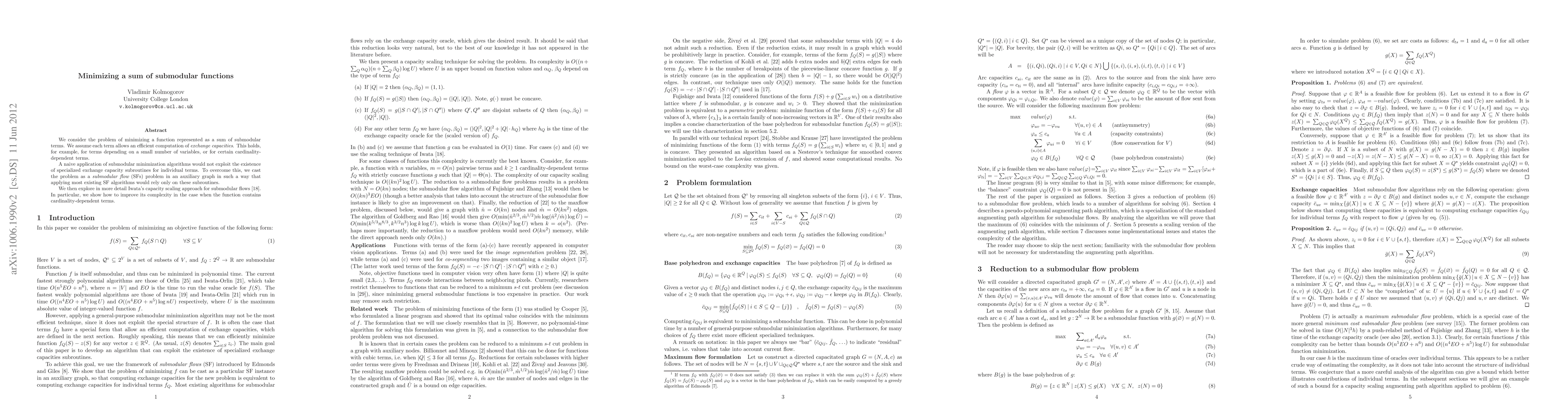 This research paper presents a new approach to minimizing functions that are sums of submodular terms, improving upon existing algorithms for specific cases like cardinality-dependent terms.