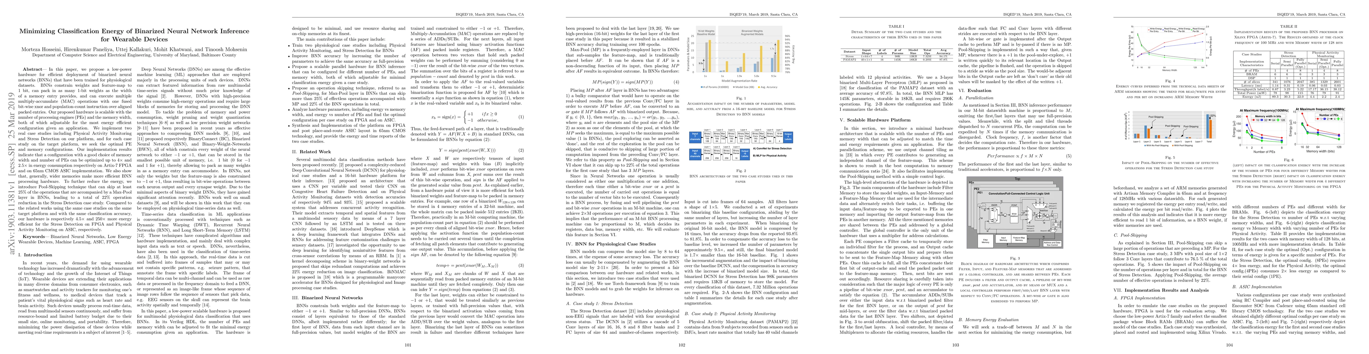 This paper proposes a low-power hardware for efficient deployment of binarized neural networks on wearable devices, achieving up to 4x energy reduction compared to existing implementations.