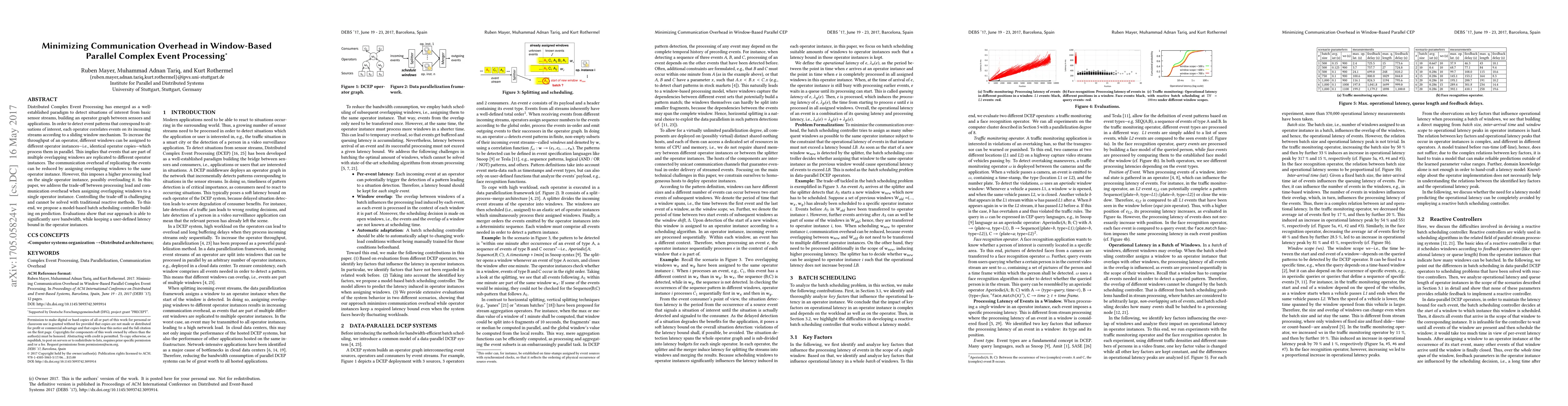 This research is significant as it tackles the challenge of minimizing communication overhead in distributed complex event processing systems, which is crucial for high-throughput applications. By proposing a model-based approach, it offers a more reliable solution compared to traditional reactive methods, ensuring efficient resource utilization and maintaining latency constraints.
