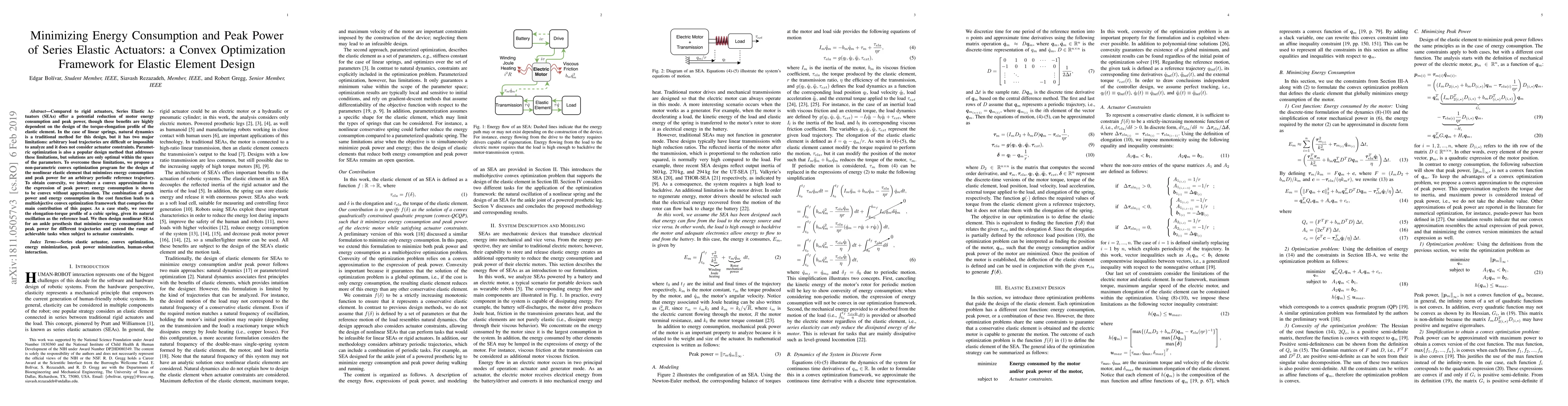 Compared to rigid actuators, Series Elastic Actuators (SEAs) offer a potential reduction of motor energy consumption and peak power, though these benefits are highly dependent on the design of the torque-elongation profile of the elastic element. In the case of linear springs, natural dynamics is a traditional method for this design, but it has two major limitations: arbitrary load trajectories are difficult or impossible to analyze and it does not consider actuator constraints. Parametric optimization is also a popular design method that addresses these limitations, but solutions are only optimal within the space of the parameters. To overcome these limitations, we propose a non-parametric convex optimization program for the design of the nonlinear elastic element that minimizes energy consumption and peak power for an arbitrary periodic reference trajectory. To obtain convexity, we introduce a convex approximation to the expression of peak power; energy consumption is shown to be convex without approximation. The combination of peak power and energy consumption in the cost function leads to a multiobjective convex optimization framework that comprises the main contribution of this paper. As a case study, we recover the elongation-torque profile of a cubic spring, given its natural oscillation as the reference load. We then design nonlinear SEAs for an ankle prosthesis that minimize energy consumption and peak power for different trajectories and extend the range of achievable tasks when subject to actuator constraints.
