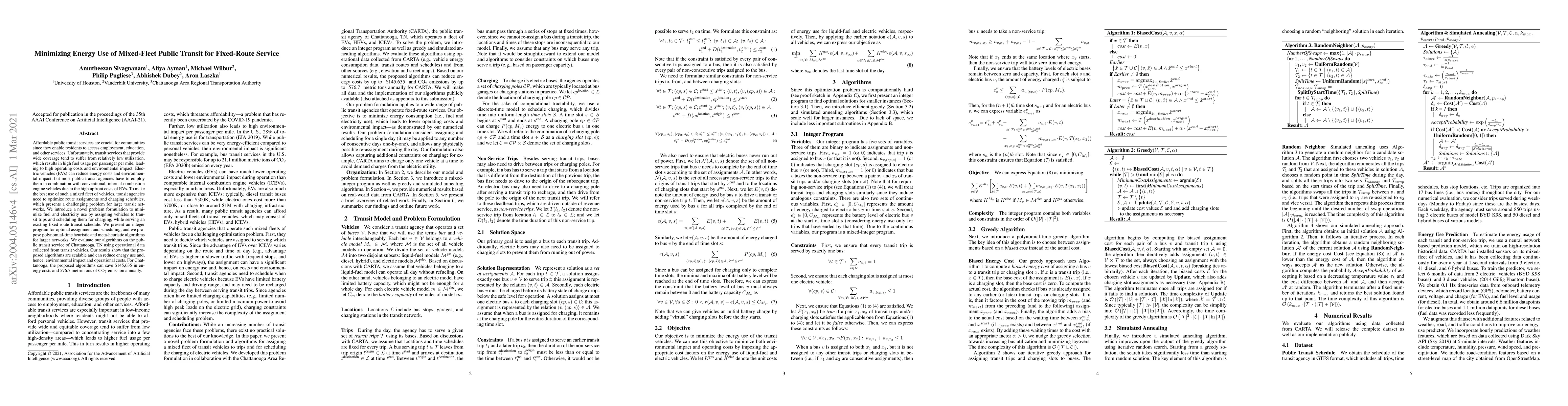 This paper proposes a novel optimization approach to minimize energy use in mixed-fleet public transit systems by optimizing vehicle assignment and charging schedules. The study demonstrates significant reductions in energy costs and CO2 emissions for Chattanooga, TN's transit service, saving $145,635 annually and 576.7 metric tons of CO2.