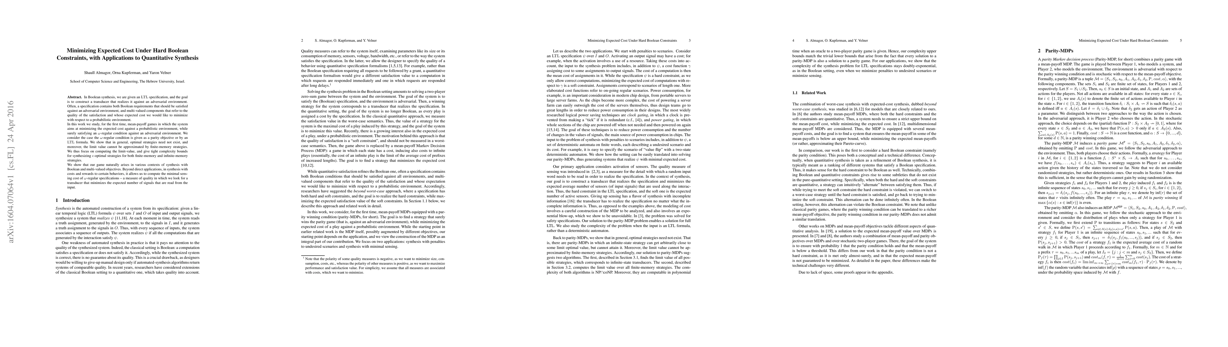 This research paper explores minimizing expected cost in Boolean synthesis under hard constraints, including applications to quantitative synthesis. It shows that optimal strategies may not exist and focuses on computing the limit value for epsilon-optimal strategies.