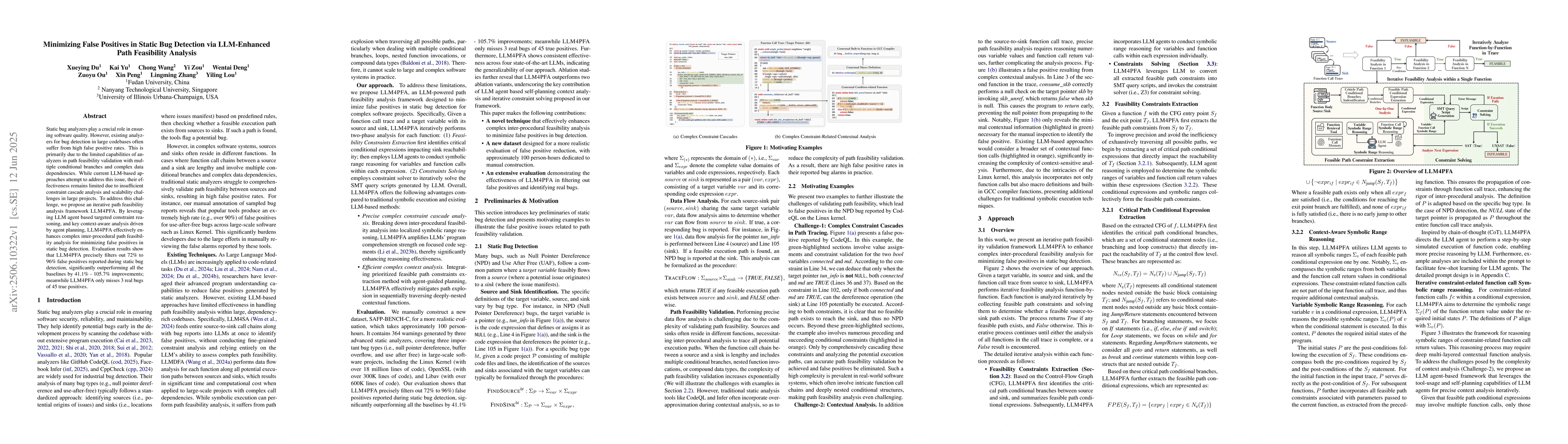 The research proposes LLM4PFA, an iterative path feasibility analysis framework powered by LLM agents to minimize false positives in static bug detection. It enhances complex inter-procedural feasibility analysis by leveraging LLM agent-based targeted constraint reasoning and context-aware analysis.