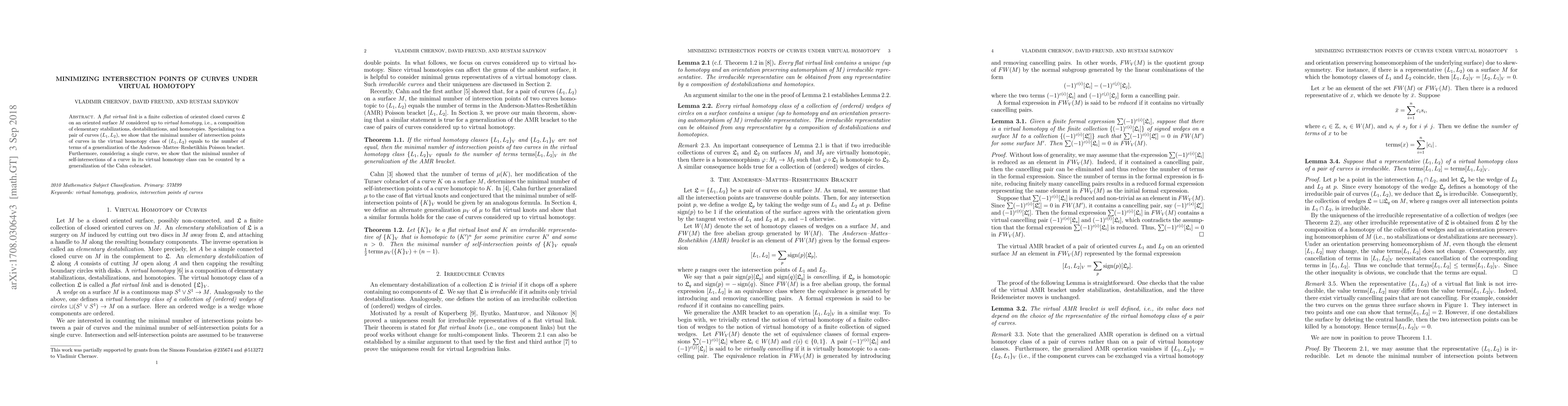 This paper investigates the minimal intersection points of curves within a flat virtual link on a surface, showing that the minimum is determined by a generalized Poisson bracket for pairs of curves and a Cahn cobracket for single curves, both under virtual homotopy.