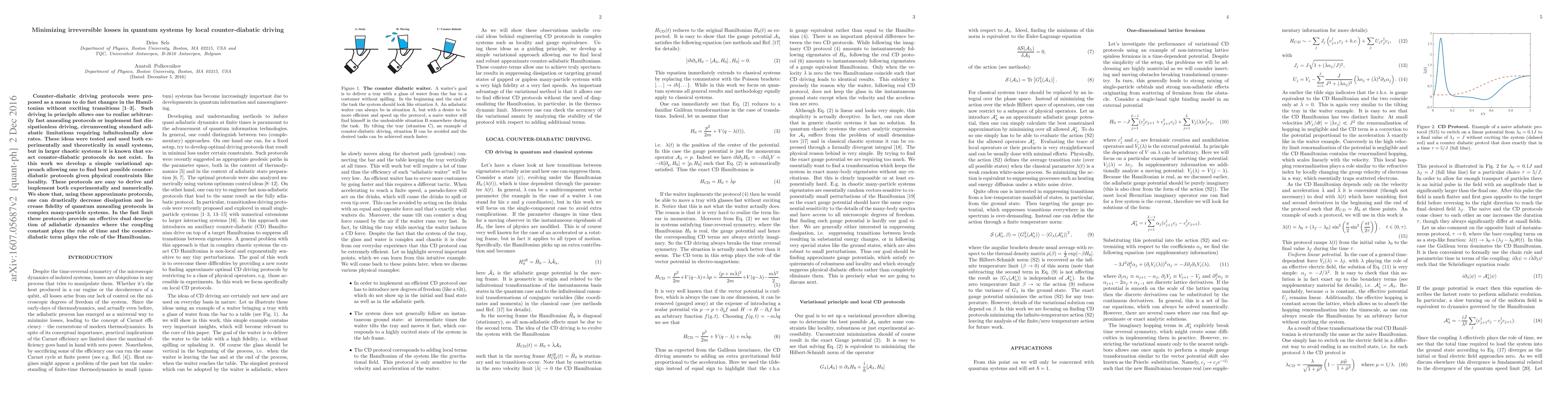 This paper proposes a variational approach to develop approximate counter-diabatic driving protocols for minimizing irreversible losses in large quantum systems. These protocols, which respect physical constraints like locality, significantly reduce dissipation and enhance the fidelity of quantum annealing processes.