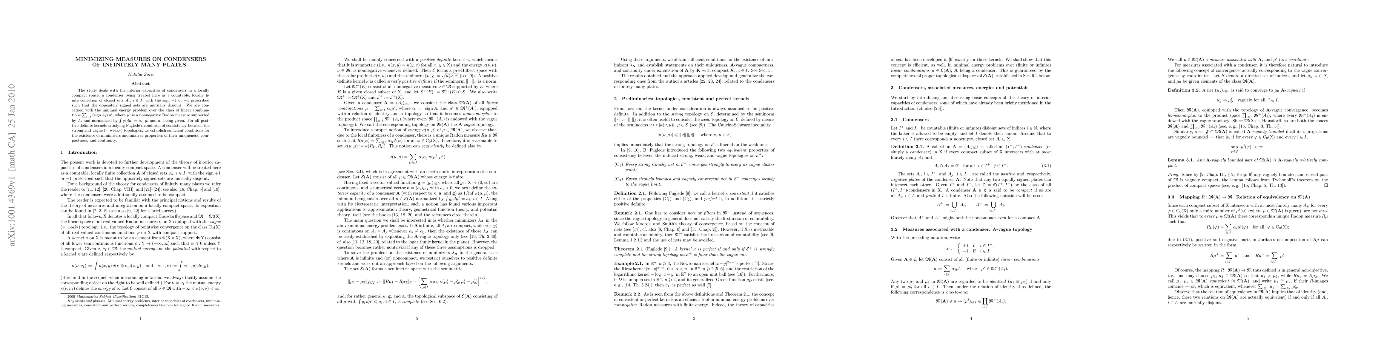 This paper investigates minimal energy configurations for infinite-dimensional vector measures in a locally compact space, focusing on condensers with infinitely many plates. It establishes sufficient conditions for the existence of equilibrium measures under positive definite kernels, and explores their uniqueness, compactness, and continuity properties.