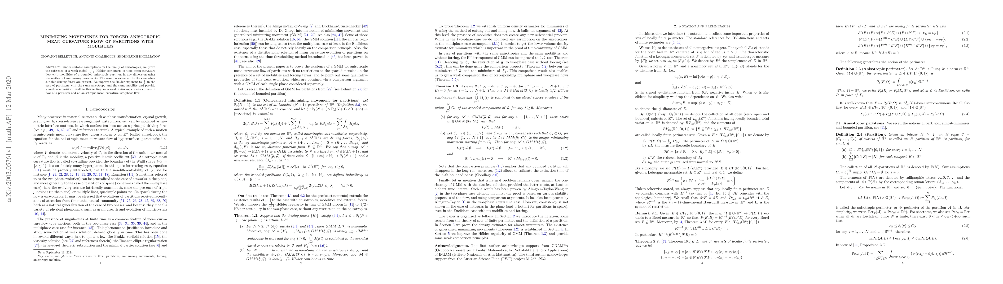 The paper introduces a method using minimizing movements to establish the existence of a global $rac{1}{n+1}$-H"older continuous in time mean curvature flow with mobilities for anisotropic partitions, extending previous results to include driving forces.