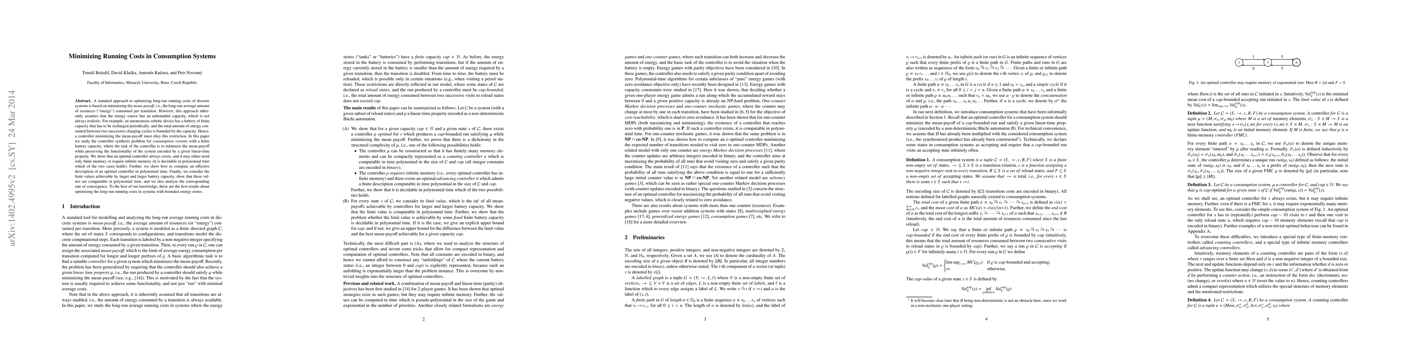 A standard approach to optimizing long-run running costs of discrete systems is based on minimizing the mean-payoff, i.e., the long-run average amount of resources ("energy") consumed per transition. However, this approach inherently assumes that the energy source has an unbounded capacity, which is not always realistic. For example, an autonomous robotic device has a battery of finite capacity that has to be recharged periodically, and the total amount of energy consumed between two successive charging cycles is bounded by the capacity. Hence, a controller minimizing the mean-payoff must obey this restriction. In this paper we study the controller synthesis problem for consumption systems with a finite battery capacity, where the task of the controller is to minimize the mean-payoff while preserving the functionality of the system encoded by a given linear-time property. We show that an optimal controller always exists, and it may either need only finite memory or require infinite memory (it is decidable in polynomial time which of the two cases holds). Further, we show how to compute an effective description of an optimal controller in polynomial time. Finally, we consider the limit values achievable by larger and larger battery capacity, show that these values are computable in polynomial time, and we also analyze the corresponding rate of convergence. To the best of our knowledge, these are the first results about optimizing the long-run running costs in systems with bounded energy stores.