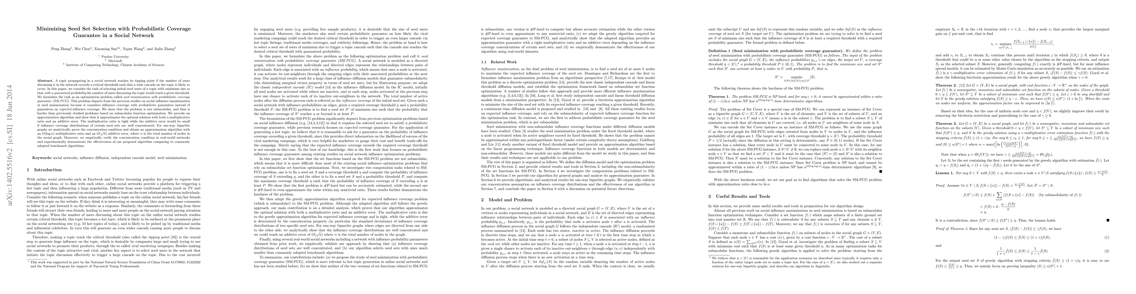 This paper addresses the challenge of selecting the smallest set of initial seed users in a social network to ensure, with a given probability, that a topic reaches a critical discussion threshold. It introduces a new optimization problem, seed minimization with probabilistic coverage guarantee (SM-PCG), and presents an approximation algorithm that achieves both a multiplicative ratio and an additive error bound, demonstrating its effectiveness through theoretical analysis and empirical evaluation on real-world networks.