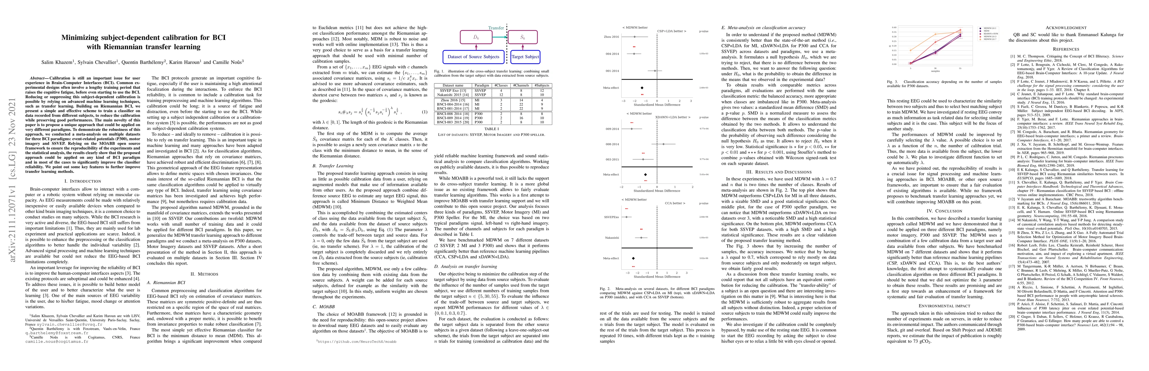 This paper proposes a Riemannian transfer learning approach to minimize subject-dependent calibration in Brain-Computer Interfaces (BCI), significantly reducing the need for lengthy training periods. The method, demonstrated across multiple datasets and BCI paradigms, shows improved classifier reliability and robustness, highlighting its potential for diverse BCI applications.