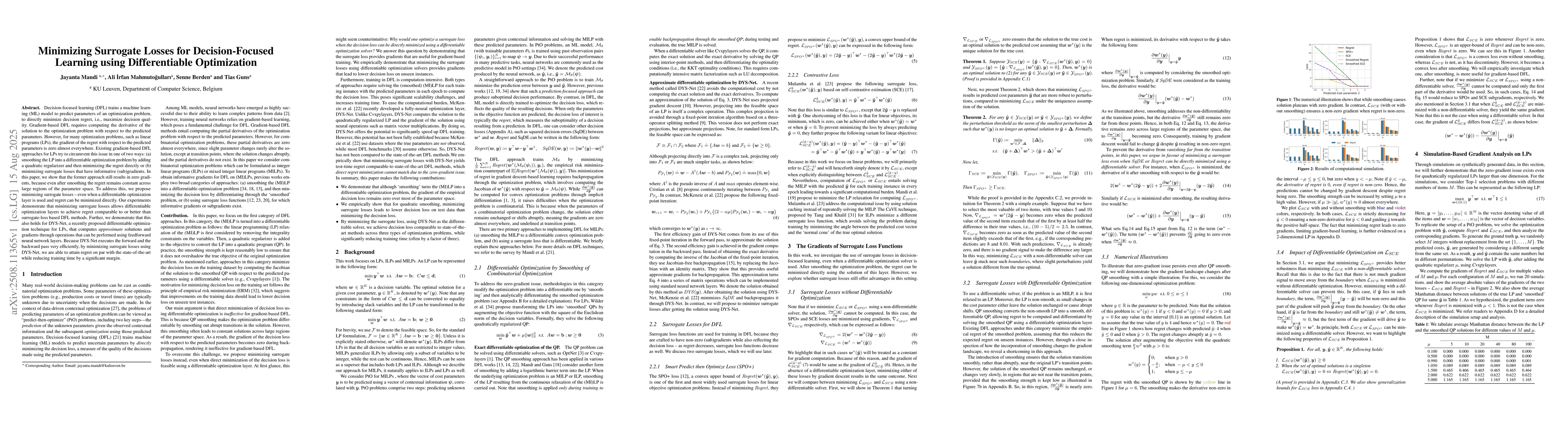 Decision-focused learning (DFL) trains a machine learning (ML) model to predict parameters of an optimization problem, to directly minimize decision regret, i.e., maximize decision quality. Gradient-based DFL requires computing the derivative of the solution to the optimization problem with respect to the predicted parameters. However, for many optimization problems, such as linear programs (LPs), the gradient of the regret with respect to the predicted parameters is zero almost everywhere. Existing gradient-based DFL approaches for LPs try to circumvent this issue in one of two ways: (a) smoothing the LP into a differentiable optimization problem by adding a quadratic regularizer and then minimizing the regret directly or (b) minimizing surrogate losses that have informative (sub)gradients. In this paper, we show that the former approach still results in zero gradients, because even after smoothing the regret remains constant across large regions of the parameter space. To address this, we propose minimizing surrogate losses -- even when a differentiable optimization layer is used and regret can be minimized directly. Our experiments demonstrate that minimizing surrogate losses allows differentiable optimization layers to achieve regret comparable to or better than surrogate-loss based DFL methods. Further, we demonstrate that this also holds for DYS-Net, a recently proposed differentiable optimization technique for LPs, that computes approximate solutions and gradients through operations that can be performed using feedforward neural network layers. Because DYS-Net executes the forward and the backward pass very efficiently, by minimizing surrogate losses using DYS-Net, we are able to attain regret on par with the state-of-the-art while reducing training time by a significant margin.
