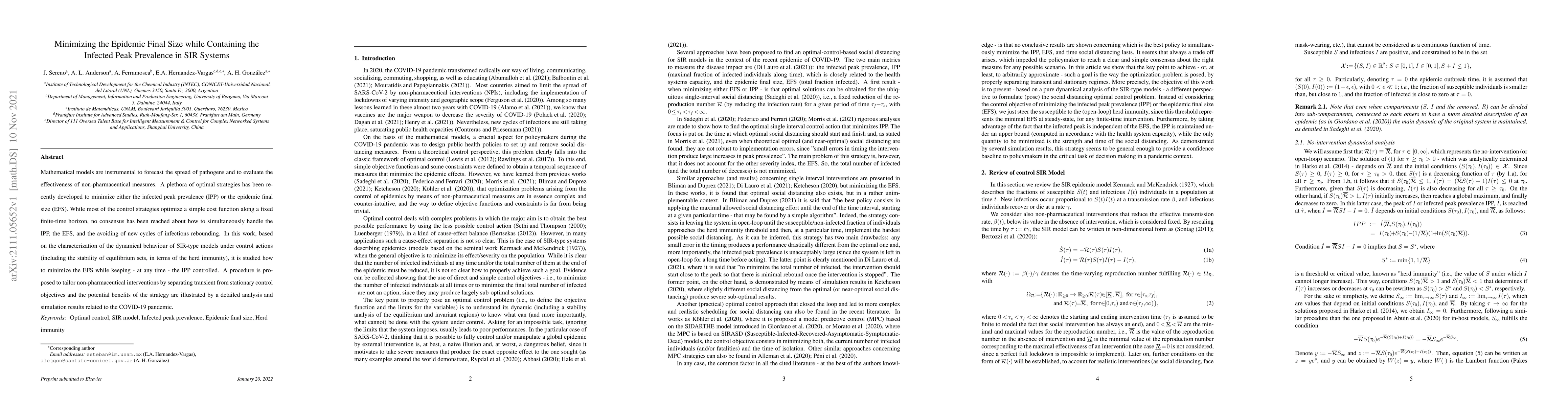 Researchers propose a strategy to minimize the final size of an epidemic while controlling the peak prevalence of infected individuals during the outbreak, using a dynamic approach that separates transient from stationary control objectives.