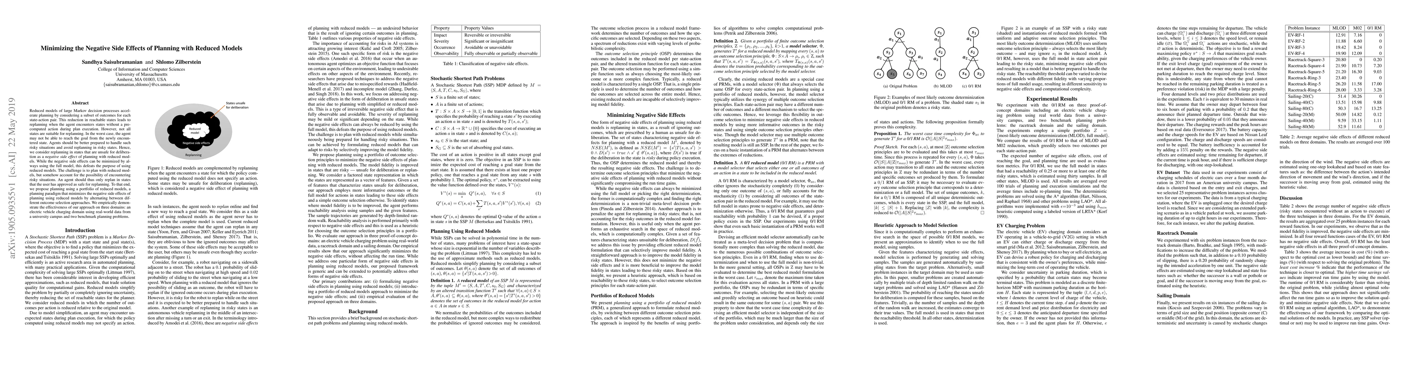Reduced models of large Markov decision processes accelerate planning by considering a subset of outcomes for each state-action pair. This reduction in reachable states leads to replanning when the agent encounters states without a precomputed action during plan execution. However, not all states are suitable for replanning. In the worst case, the agent may not be able to reach the goal from the newly encountered state. Agents should be better prepared to handle such risky situations and avoid replanning in risky states. Hence, we consider replanning in states that are unsafe for deliberation as a negative side effect of planning with reduced models. While the negative side effects can be minimized by always using the full model, this defeats the purpose of using reduced models. The challenge is to plan with reduced models, but somehow account for the possibility of encountering risky situations. An agent should thus only replan in states that the user has approved as safe for replanning. To that end, we propose planning using a portfolio of reduced models, a planning paradigm that minimizes the negative side effects of planning using reduced models by alternating between different outcome selection approaches. We empirically demonstrate the effectiveness of our approach on three domains: an electric vehicle charging domain using real-world data from a university campus and two benchmark planning problems.