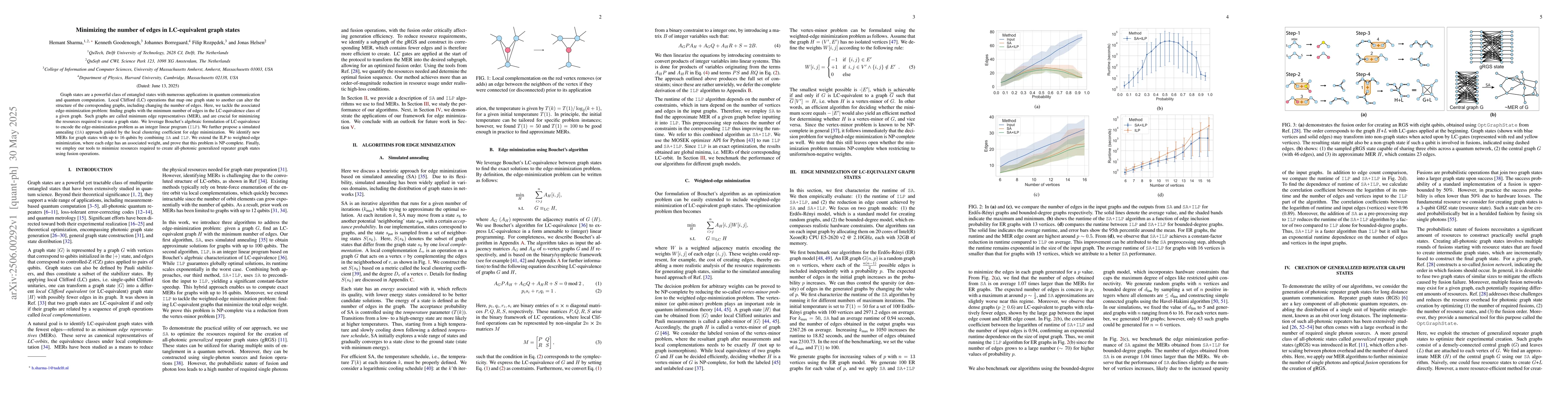 This paper aims to minimize the number of edges in quantum graph states while maintaining their LC-equivalence, which is crucial for reducing resources required to create such states.