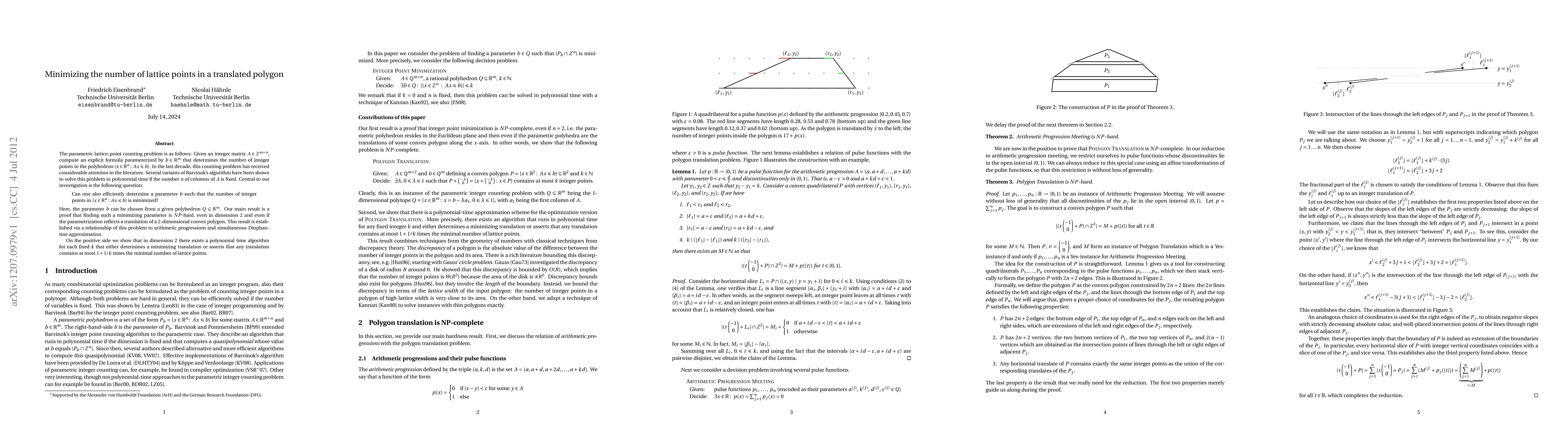 This paper explores the computational complexity of minimizing the number of lattice points in a translated polygon defined by a polyhedron. It proves that finding a minimizing parameter is NP-hard, even for 2-dimensional translations. However, it also presents a polynomial-time algorithm for fixed dimensions that either finds a minimizing translation or bounds the number of lattice points.