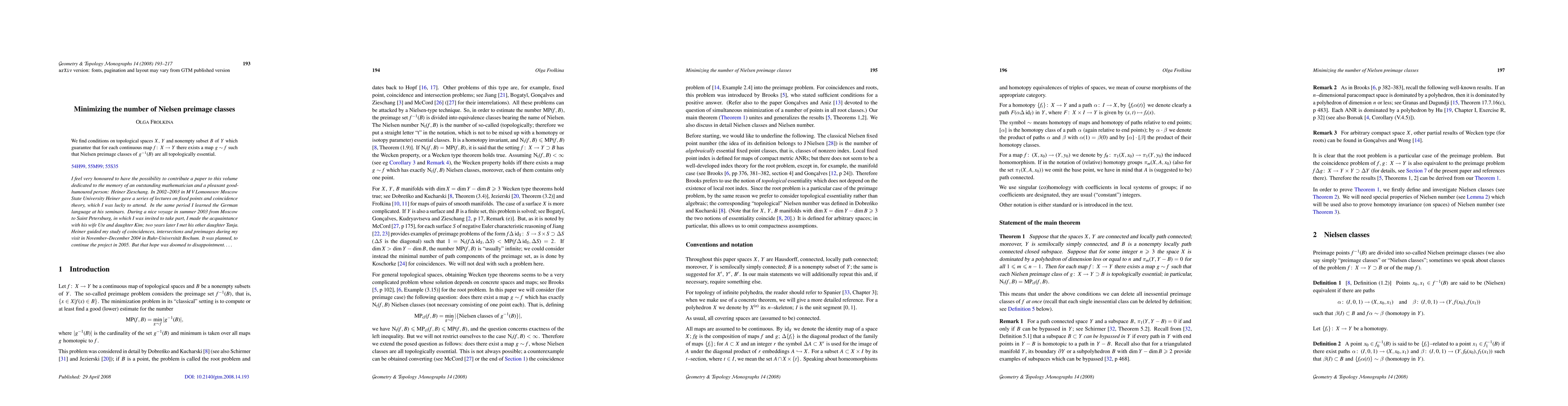 This paper identifies conditions on topological spaces X, Y, and subset B of Y that ensure a continuous map f from X to Y can be homotopically modified to a new map g, whose preimage of B consists of topologically essential Nielsen preimage classes.