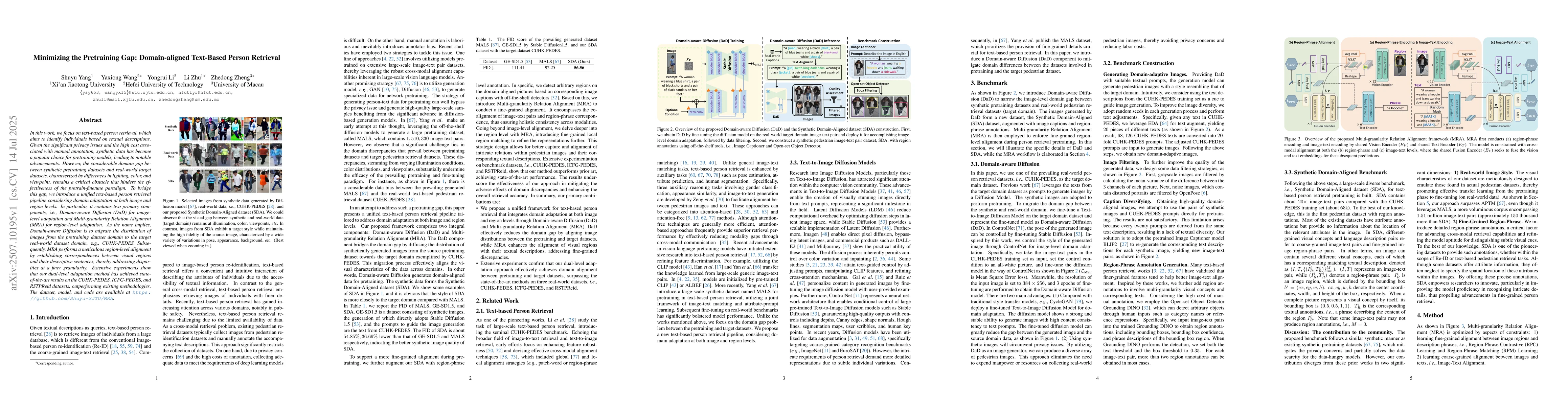In this work, we focus on text-based person retrieval, which aims to identify individuals based on textual descriptions. Given the significant privacy issues and the high cost associated with manual annotation, synthetic data has become a popular choice for pretraining models, leading to notable advancements. However, the considerable domain gap between synthetic pretraining datasets and real-world target datasets, characterized by differences in lighting, color, and viewpoint, remains a critical obstacle that hinders the effectiveness of the pretrain-finetune paradigm. To bridge this gap, we introduce a unified text-based person retrieval pipeline considering domain adaptation at both image and region levels. In particular, it contains two primary components, i.e., Domain-aware Diffusion (DaD) for image-level adaptation and Multi-granularity Relation Alignment (MRA) for region-level adaptation. As the name implies, Domain-aware Diffusion is to migrate the distribution of images from the pretraining dataset domain to the target real-world dataset domain, e.g., CUHK-PEDES. Subsequently, MRA performs a meticulous region-level alignment by establishing correspondences between visual regions and their descriptive sentences, thereby addressing disparities at a finer granularity. Extensive experiments show that our dual-level adaptation method has achieved state-of-the-art results on the CUHK-PEDES, ICFG-PEDES, and RSTPReid datasets, outperforming existing methodologies. The dataset, model, and code are available at https://github.com/Shuyu-XJTU/MRA.