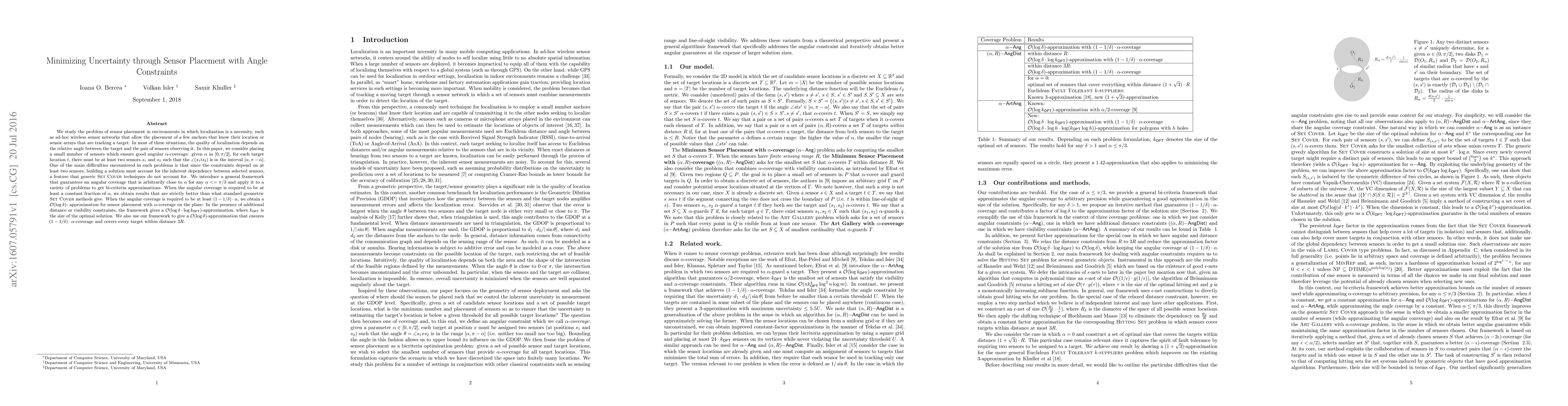 Researchers developed a framework to optimize sensor placement in environments where localization is crucial, ensuring good angular coverage for target locations with arbitrary constraints, achieving better results than traditional geometric Set Cover methods.