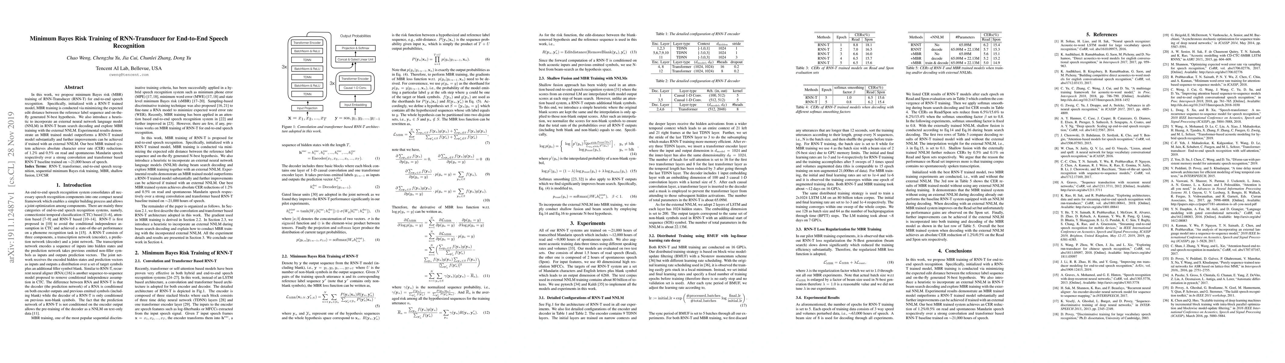 This paper proposes minimum Bayes risk (MBR) training for RNN-Transducer models to enhance end-to-end speech recognition, achieving significant reductions in character error rates compared to traditional RNN-T training. The MBR approach, combined with an external neural network language model, further improves performance.