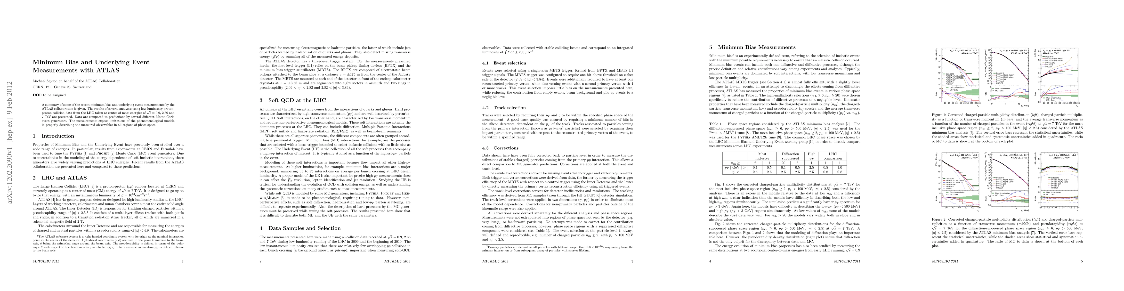 Summary: The ATLAS collaboration reports on recent minimum bias and underlying event measurements from low-luminosity proton-proton collisions at various energies, revealing discrepancies between observed data and predictions from different Monte Carlo models. These findings highlight limitations in current phenomenological models.