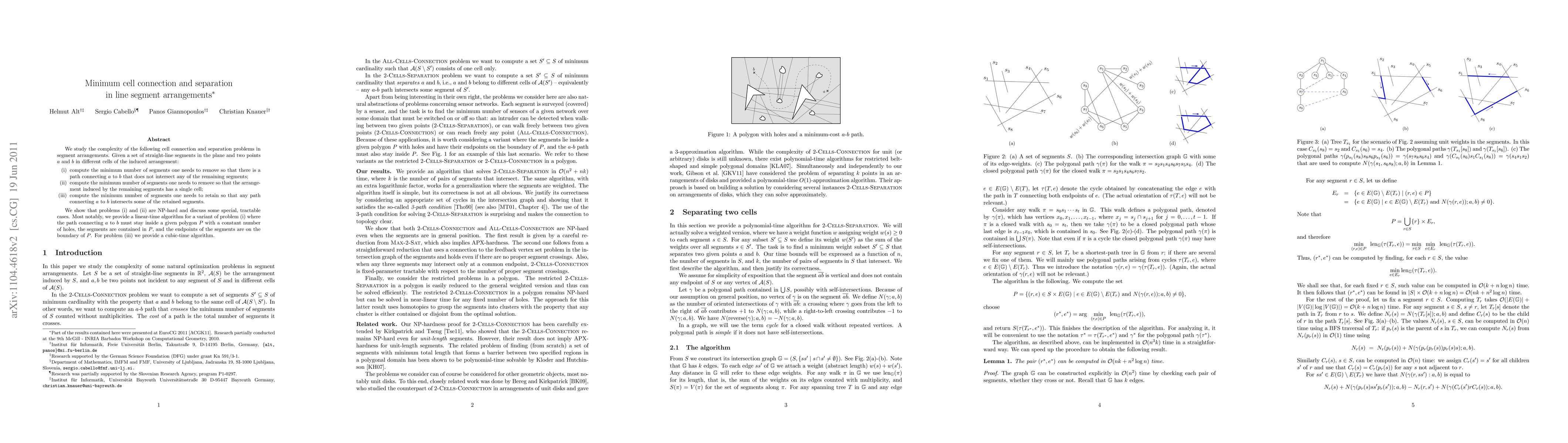 This paper investigates the complexity of cell connection and separation problems in segment arrangements, proving NP-hardness for problems (i) and (ii) while providing a linear-time algorithm for a special case of (i) within a constrained polygon. It also offers a cubic-time algorithm for problem (iii).