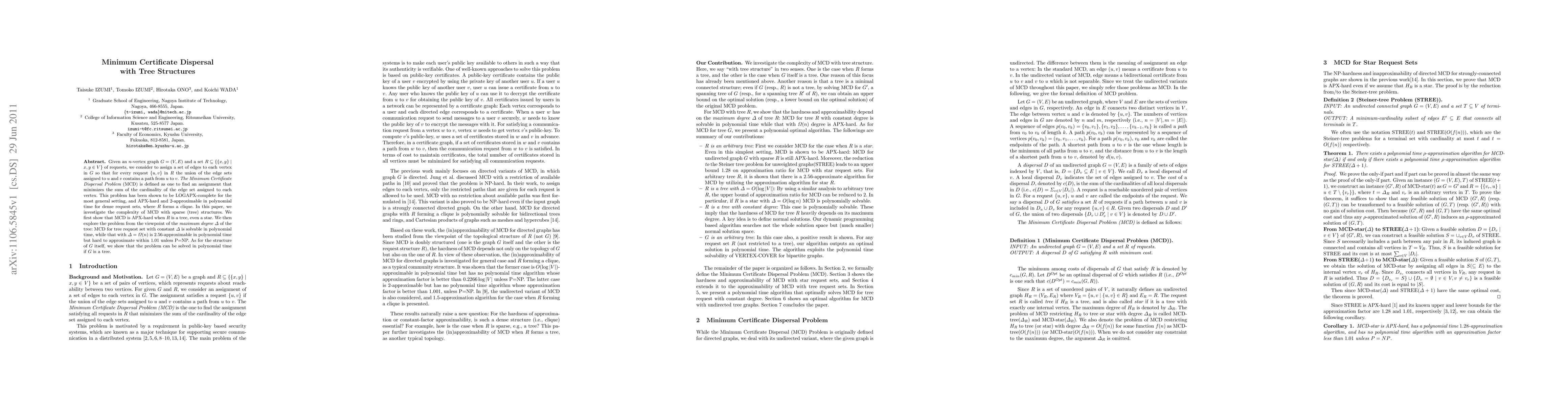 Researchers investigate the Minimum Certificate Dispersal Problem on tree structures, showing that it is APX-hard for general trees but solvable in polynomial time for specific cases with constant degree or tree structure.