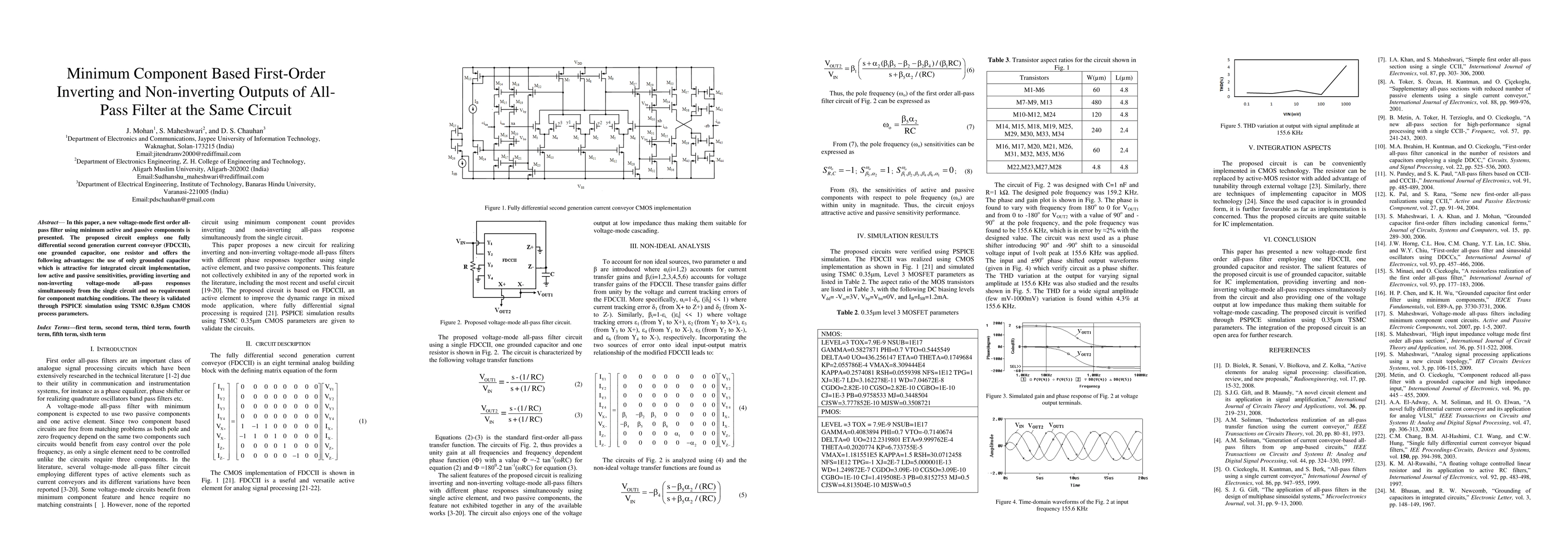 In this paper, a new voltage-mode first order all-pass filter using minimum active and passive components is presented. The proposed circuit employs one fully differential second generation current conveyor (FDCCII), one grounded capacitor, one resistor and offers the following advantages: the use of only grounded capacitor which is attractive for integrated circuit implementation, low active and passive sensitivities, providing inverting and non-inverting voltage-mode all-pass responses simultaneously from the single circuit and no requirement for component matching conditions. The theory is validated through PSPICE simulation using TSMC 0.35micrometer CMOS process parameters.