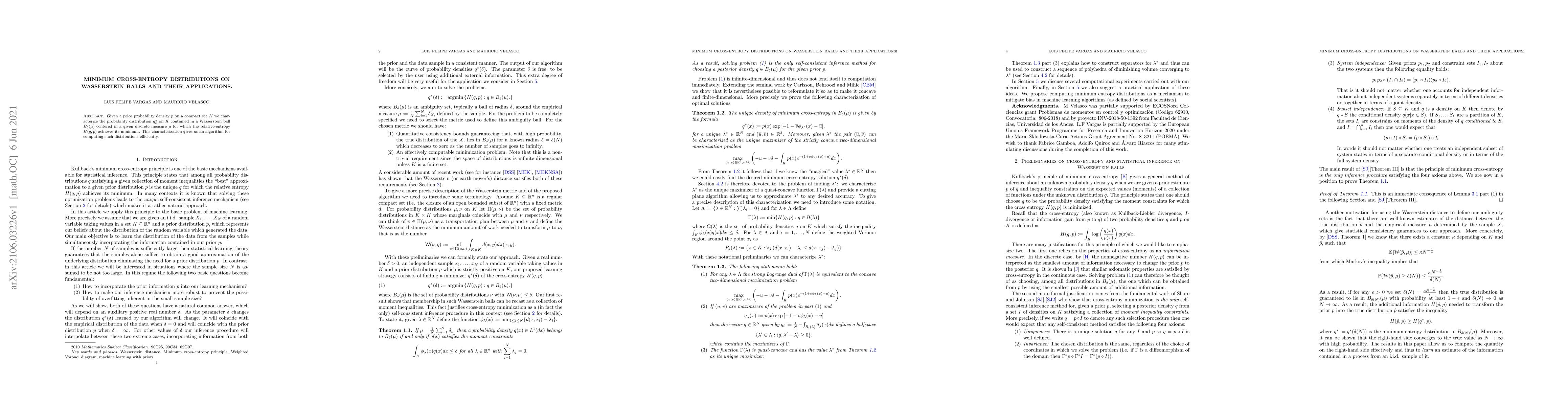 Given a prior probability density $p$ on a compact set $K$ we characterize the probability distribution $q_{\delta}^*$ on $K$ contained in a Wasserstein ball $B_{\delta}(\mu)$ centered in a given discrete measure $\mu$ for which the relative-entropy $H(q,p)$ achieves its minimum. This characterization gives us an algorithm for computing such distributions efficiently