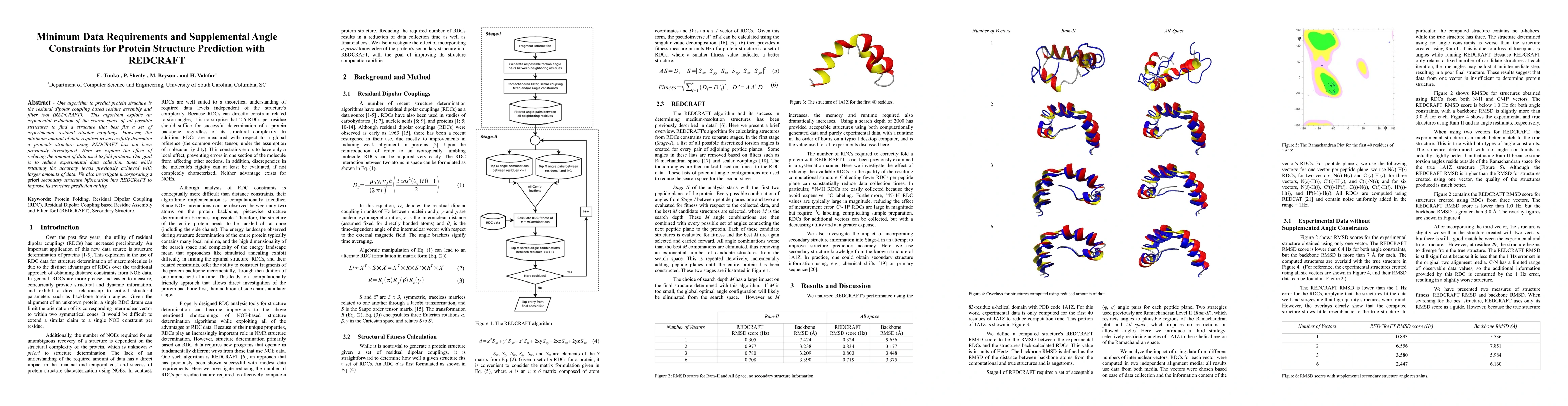 This paper investigates the minimum data requirements and supplemental angle constraints for protein structure prediction using REDCRAFT, aiming to reduce data collection times while maintaining accuracy. It also explores incorporating secondary structure information to enhance REDCRAFT's predictive capabilities.
