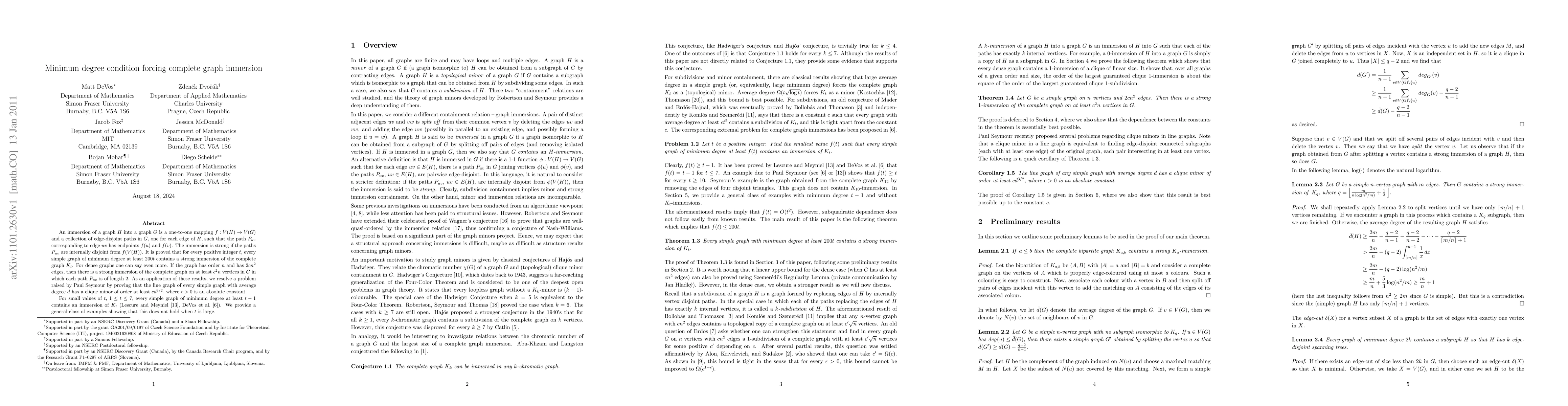This research paper shows that for simple graphs with a minimum degree of at least 200t, there exists a strong immersion (a specific type of mapping) of the complete graph Kt, resolving a problem raised by Paul Seymour.