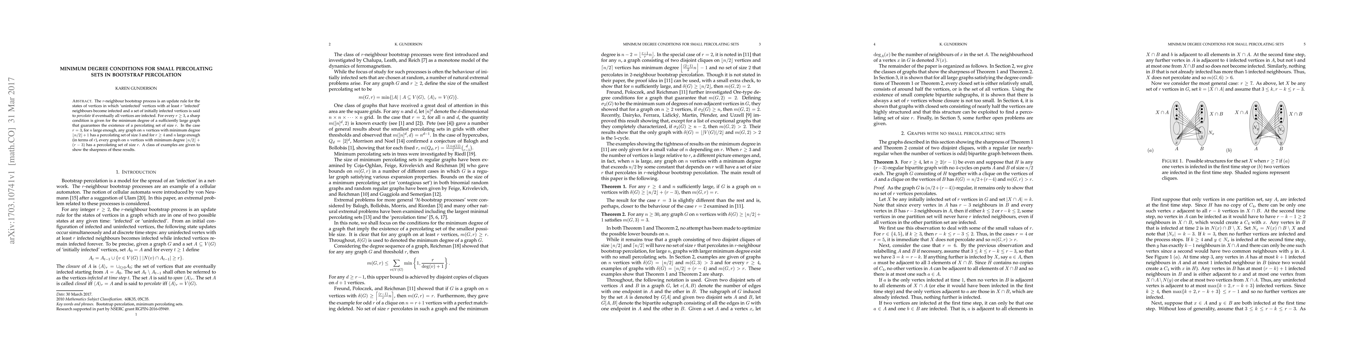 The work presents novel results on the minimum degree conditions for small percolating sets in bootstrap percolation, providing new insights into the behavior of these systems.