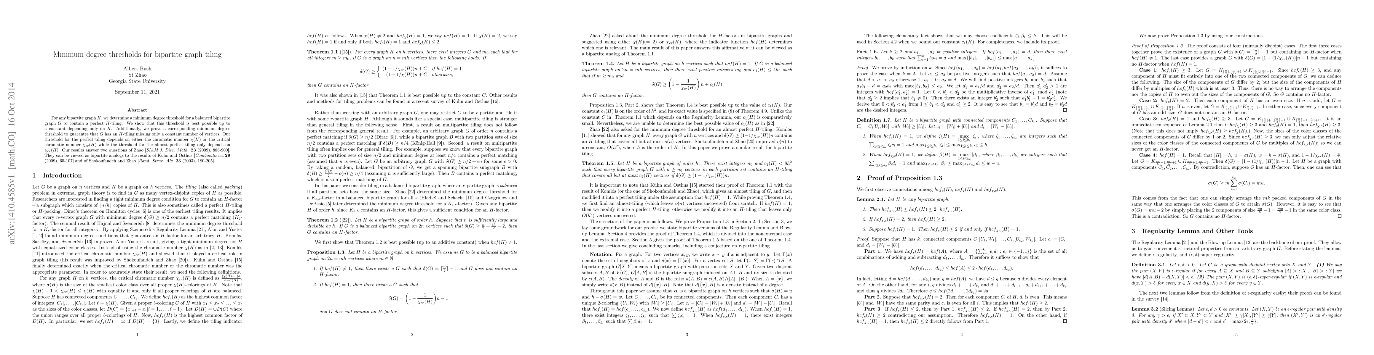 This paper establishes minimum degree thresholds for balanced bipartite graphs to contain perfect or nearly perfect tilings of a given bipartite graph $H$, showing these thresholds are optimal. The results depend on $H$'s chromatic number and critical chromatic number, answering questions posed by Zhao.