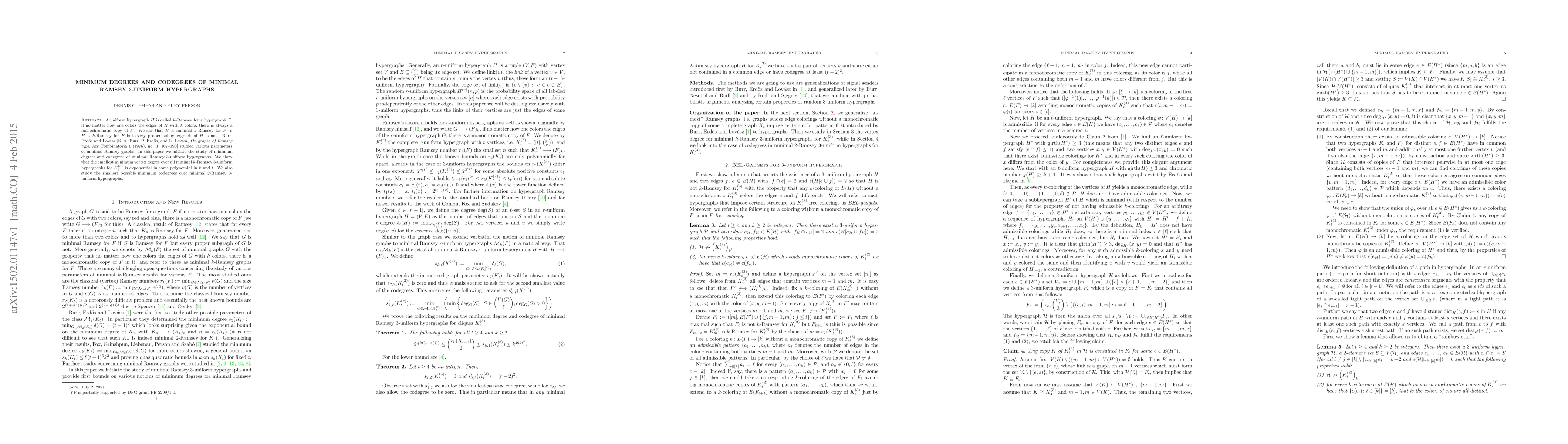 This paper investigates the minimum degrees and codegrees of minimal Ramsey 3-uniform hypergraphs, demonstrating that the smallest minimum vertex degree for minimal $k$-Ramsey hypergraphs for $K_t^{(3)}$ is exponential in polynomial terms of $k$ and $t. It also explores the smallest possible minimum codegrees for minimal 2-Ramsey 3-uniform hypergraphs.