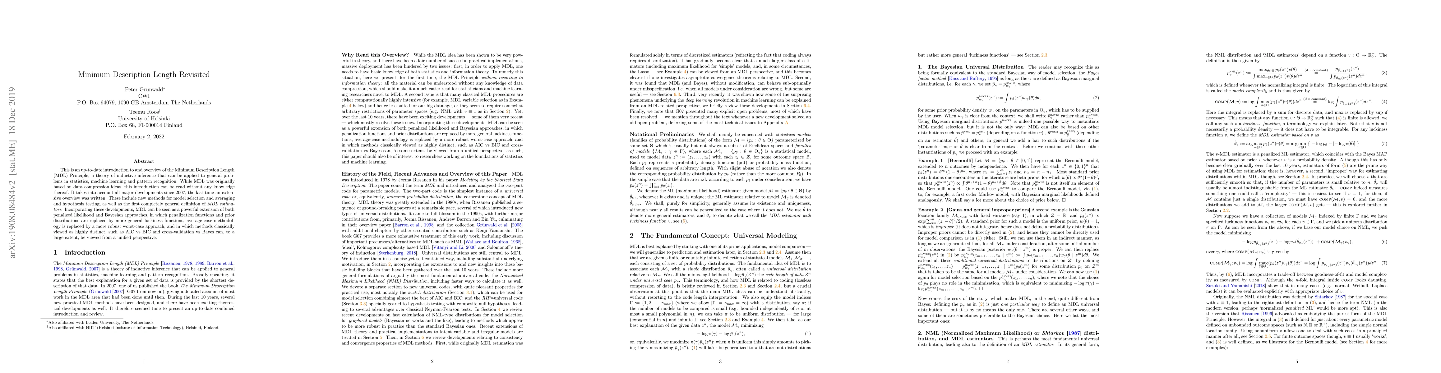 This paper provides a comprehensive update on the Minimum Description Length (MDL) Principle, highlighting its applications in statistics, machine learning, and pattern recognition. It incorporates recent developments, including new model selection methods, and presents MDL as a unifying framework that extends both penalized likelihood and Bayesian approaches.