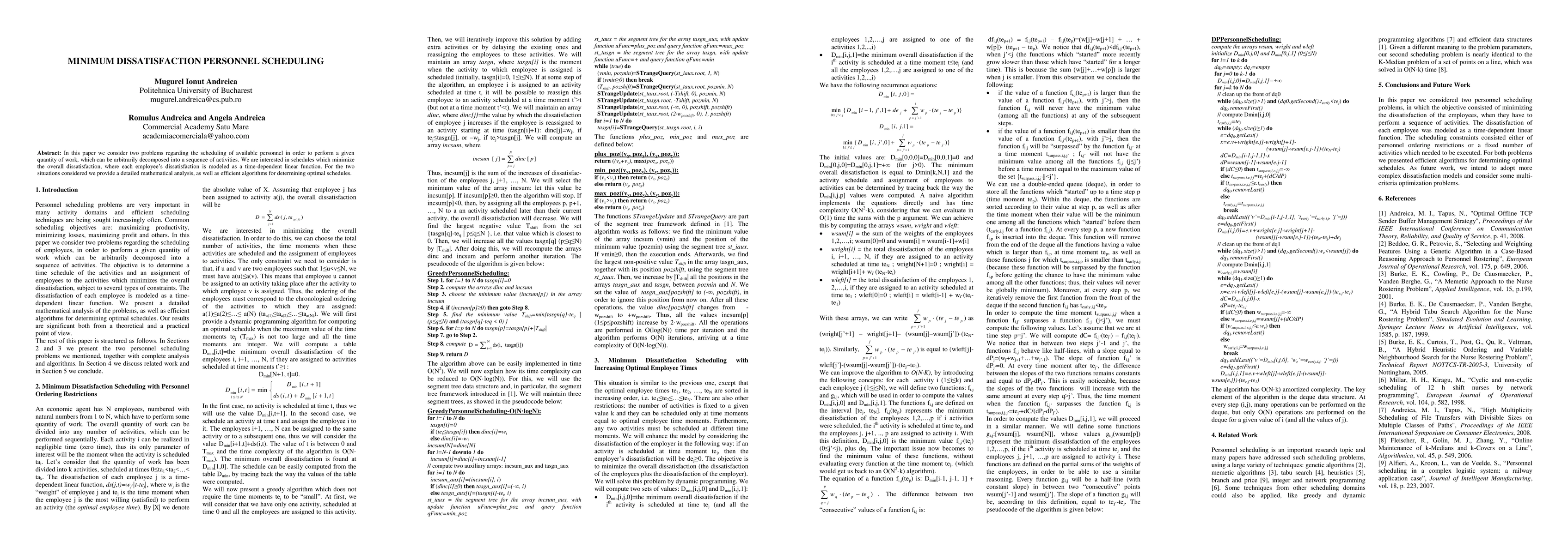 A research paper develops algorithms to minimize employee dissatisfaction in personnel scheduling, modeling each employee's dissatisfaction as a time-dependent linear function, for two considered scenarios.