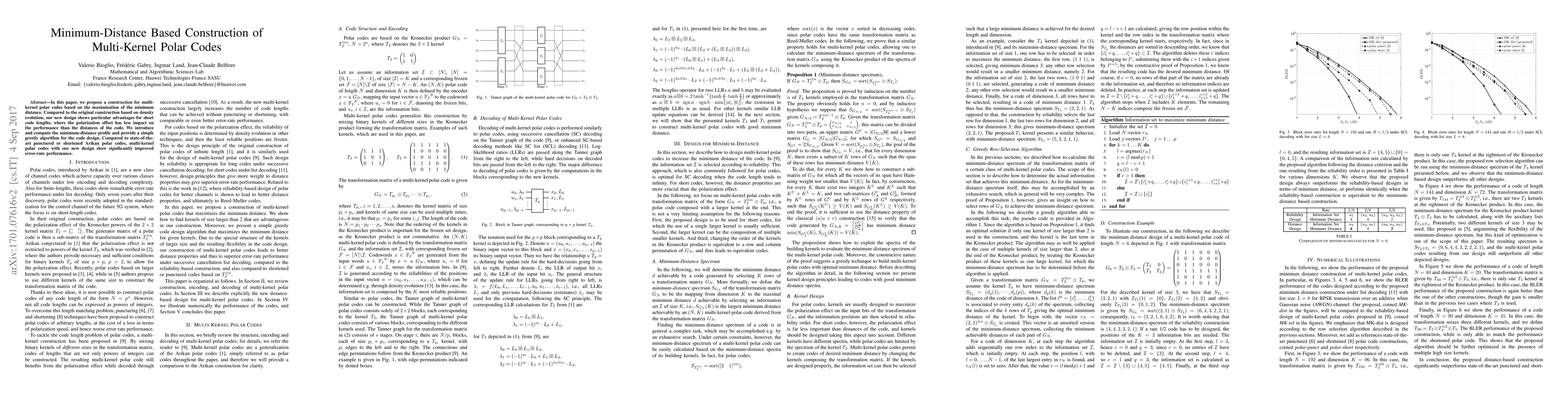 This paper proposes a new construction for multi-kernel polar codes that maximizes the minimum distance, demonstrating better performance for short code lengths compared to traditional density evolution methods. The authors introduce a minimum-distance profile and a greedy algorithm for code design, resulting in superior error-rate performance over existing polar codes.