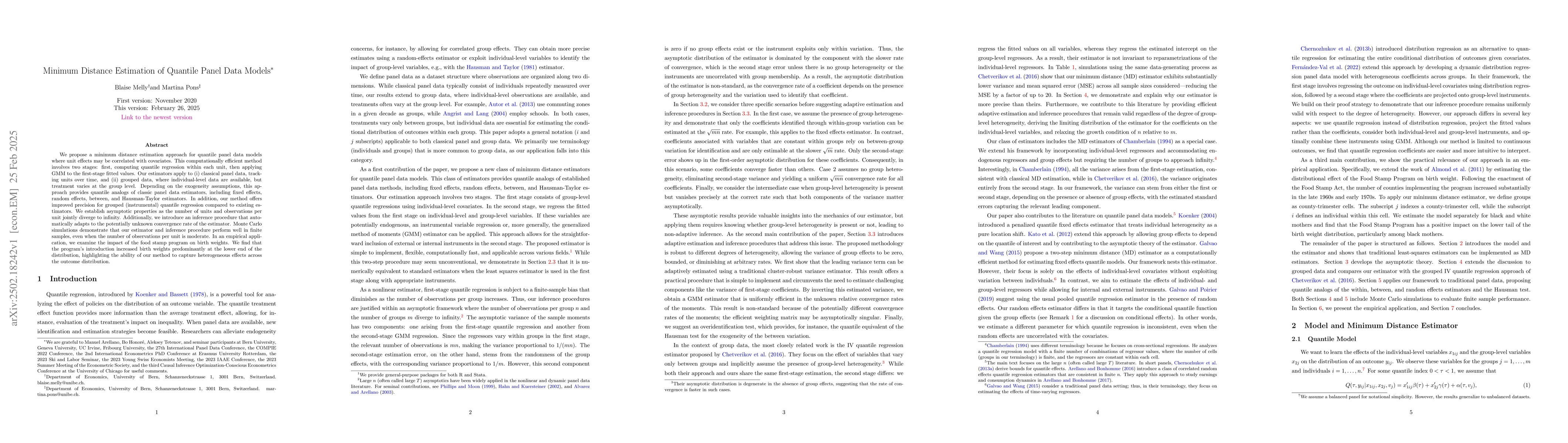 The paper introduces a computationally efficient minimum distance estimation approach for quantile panel data models, providing uniform asymptotic properties and adaptive inference procedures.