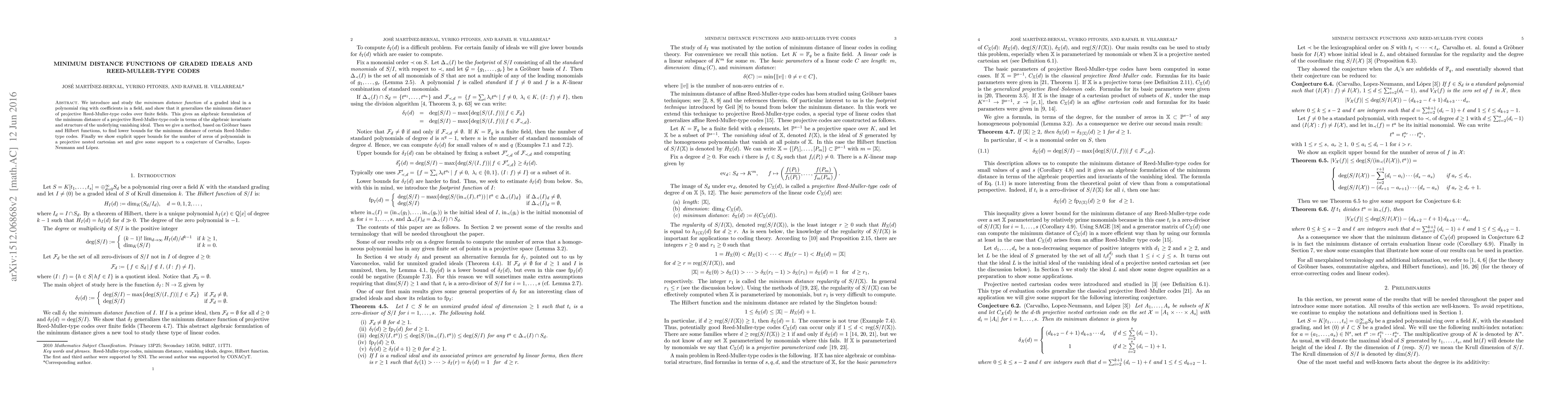 This paper explores the minimum distance function of graded ideals in polynomial rings, demonstrating its generalization of Reed-Muller-type codes' minimum distance. It employs Groebner bases and Hilbert functions to derive lower bounds for these codes' distances and provides explicit upper bounds for polynomial zeros in nested cartesian sets.