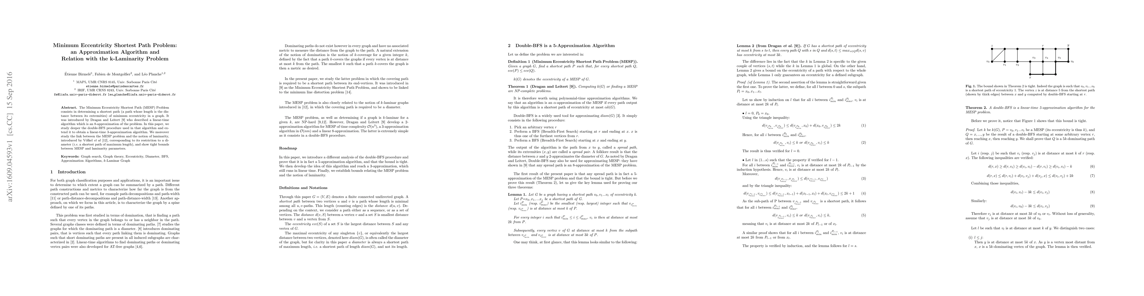 This paper presents a linear-time 3-approximation algorithm for the Minimum Eccentricity Shortest Path (MESP) Problem, improving upon the existing 8-approximation. It also explores the relationship between MESP and the k-Laminarity Problem, establishing tight bounds between them.