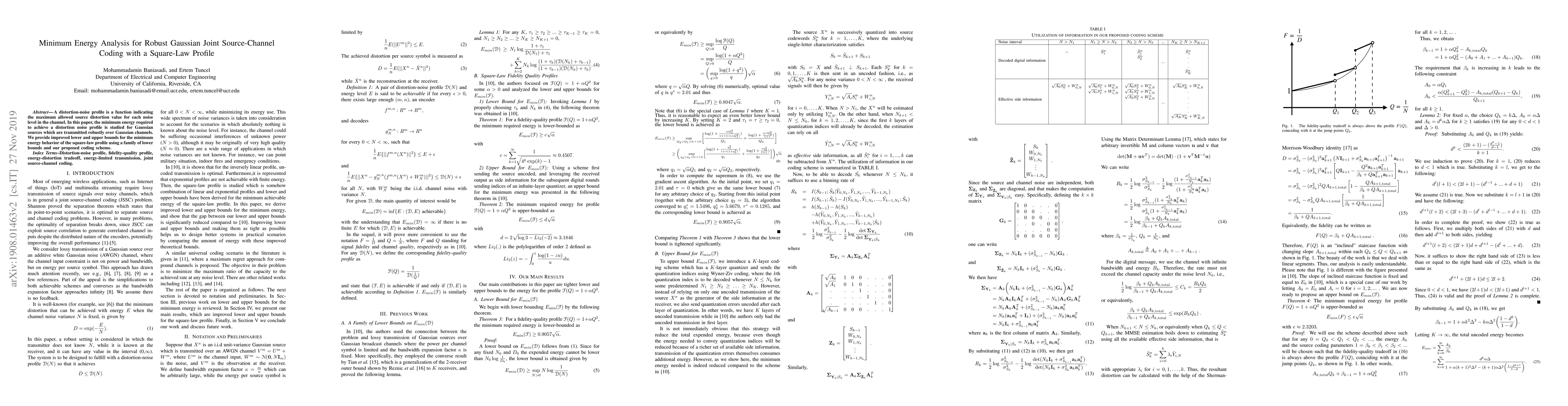 This paper studies the minimum energy required for robust Gaussian joint source-channel coding with a square-law profile, providing improved bounds for achieving optimal distortion-noise profiles.