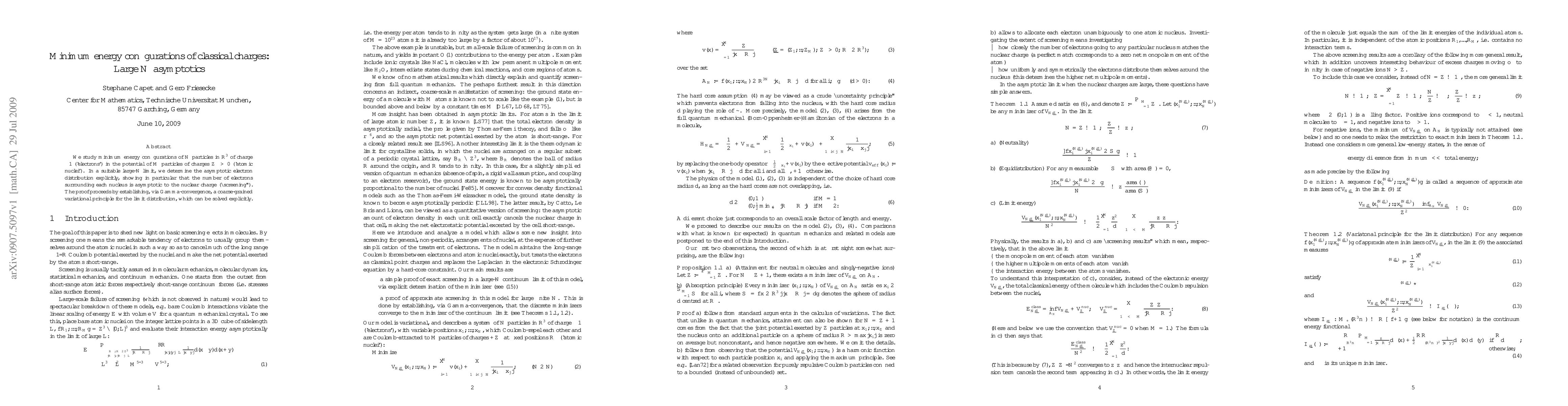 We study minimum energy configurations of $N$ particles in $\R^3$ of charge -1 (`electrons') in the potential of $M$ particles of charges $Z_\alpha>0$ (`atomic nuclei'). In a suitable large-N limit, we determine the asymptotic electron distribution explicitly, showing in particular that the number of electrons surrounding each nucleus is asymptotic to the nuclear charge ("screening"). The proof proceeds by establishing, via Gamma-convergence, a coarse-grained variational principle for the limit distribution, which can be solved explicitly.