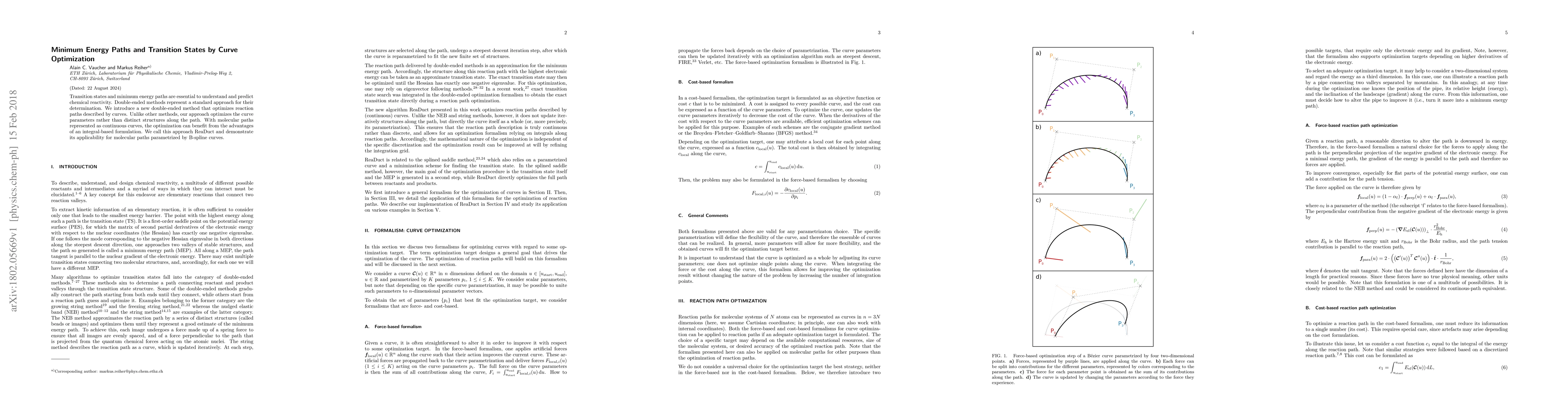 This paper introduces ReaDuct, a new double-ended method for optimizing minimum energy paths and transition states in chemical reactions, which represents molecular paths as continuous B-spline curves rather than discrete structures, leveraging integral-based formulations for enhanced optimization. The method demonstrates its effectiveness through practical applications.