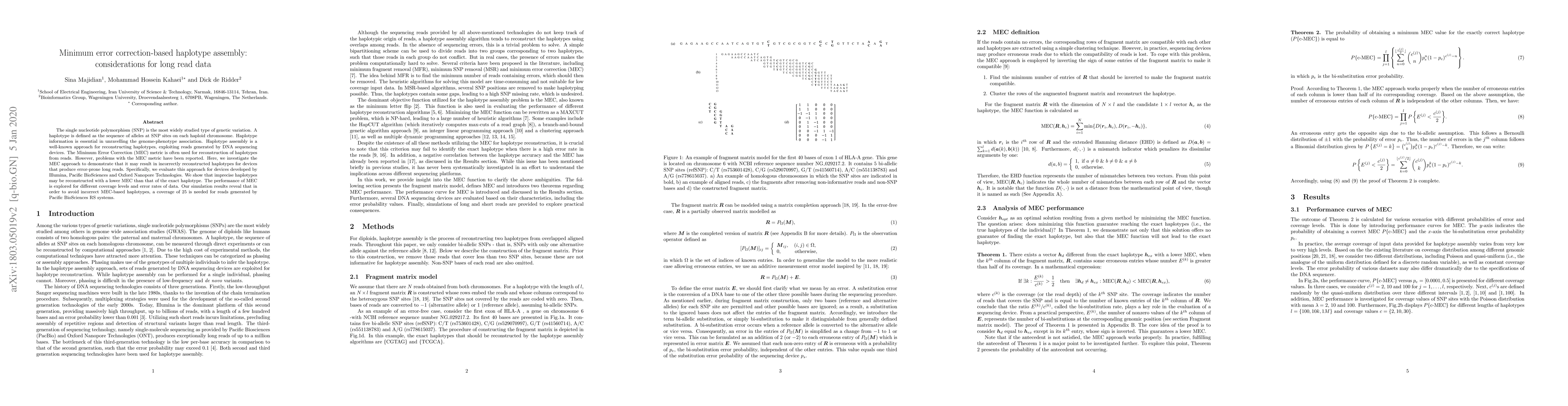 The single nucleotide polymorphism (SNP) is the most widely studied type of genetic variation. A haplotype is defined as the sequence of alleles at SNP sites on each haploid chromosome. Haplotype information is essential in unravelling the genome-phenotype association. Haplotype assembly is a well-known approach for reconstructing haplotypes, exploiting reads generated by DNA sequencing devices. The Minimum Error Correction (MEC) metric is often used for reconstruction of haplotypes from reads. However, problems with the MEC metric have been reported. Here, we investigate the MEC approach to demonstrate that it may result in incorrectly reconstructed haplotypes for devices that produce error-prone long reads. Specifically, we evaluate this approach for devices developed by Illumina, Pacific BioSciences and Oxford Nanopore Technologies. We show that imprecise haplotypes may be reconstructed with a lower MEC than that of the exact haplotype. The performance of MEC is explored for different coverage levels and error rates of data. Our simulation results reveal that in order to avoid incorrect MEC-based haplotypes, a coverage of 25 is needed for reads generated by Pacific BioSciences RS systems.