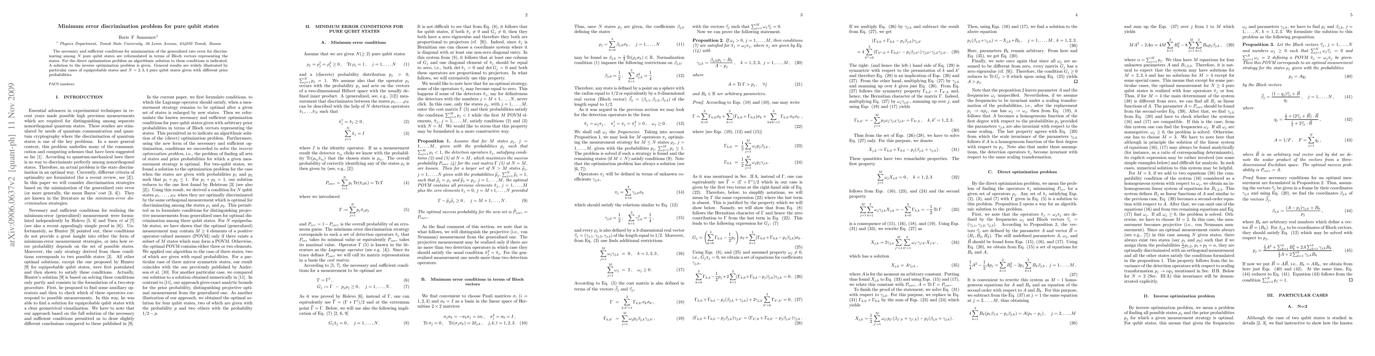 This paper reformulates the minimum error discrimination problem for pure qubit states using Bloch vectors and provides algorithmic solutions for both direct and inverse optimization problems. It illustrates general results with specific cases for equiprobable states and $N=2,3,4$ qubit states under varying prior probabilities.