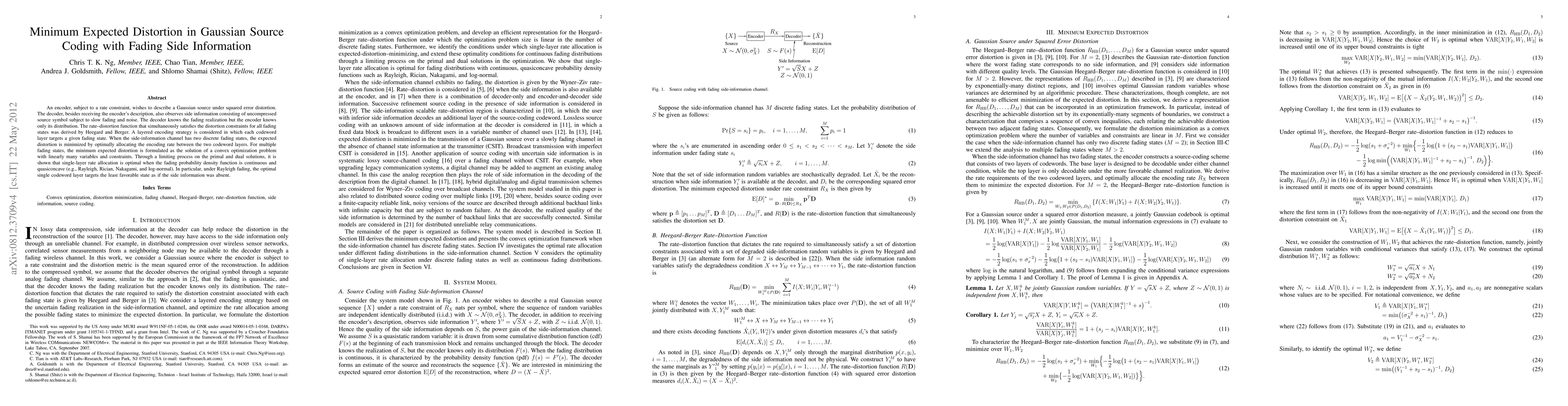 An encoder, subject to a rate constraint, wishes to describe a Gaussian source under squared error distortion. The decoder, besides receiving the encoder's description, also observes side information consisting of uncompressed source symbol subject to slow fading and noise. The decoder knows the fading realization but the encoder knows only its distribution. The rate-distortion function that simultaneously satisfies the distortion constraints for all fading states was derived by Heegard and Berger. A layered encoding strategy is considered in which each codeword layer targets a given fading state. When the side-information channel has two discrete fading states, the expected distortion is minimized by optimally allocating the encoding rate between the two codeword layers. For multiple fading states, the minimum expected distortion is formulated as the solution of a convex optimization problem with linearly many variables and constraints. Through a limiting process on the primal and dual solutions, it is shown that single-layer rate allocation is optimal when the fading probability density function is continuous and quasiconcave (e.g., Rayleigh, Rician, Nakagami, and log-normal). In particular, under Rayleigh fading, the optimal single codeword layer targets the least favorable state as if the side information was absent.