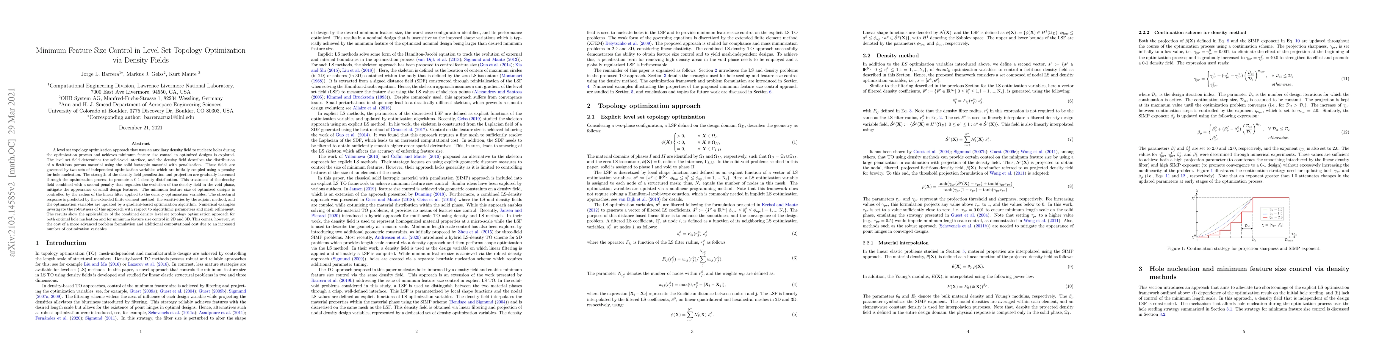 A novel approach to topology optimization controls minimum feature size in designs by using a density field that gradually promotes a 0-1 distribution, reducing the appearance of small features.