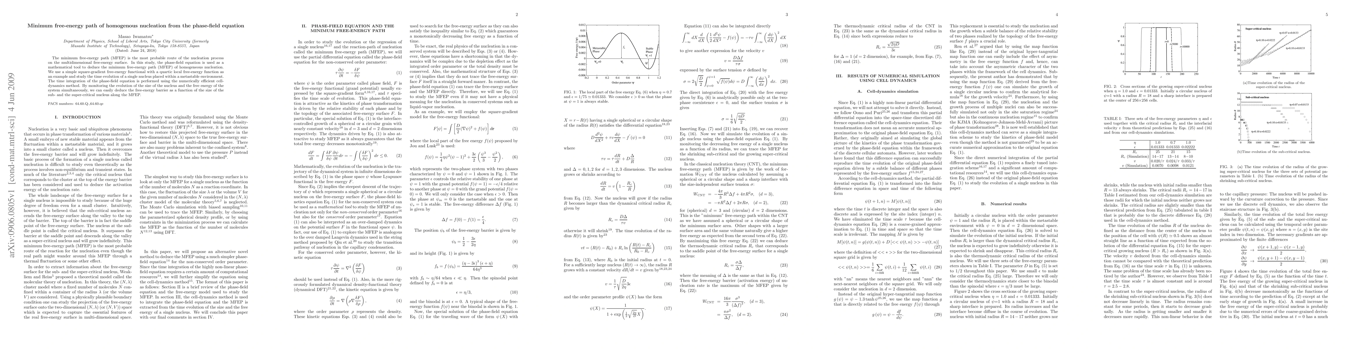 The minimum free-energy path (MFEP) is the most probable route of the nucleation process on the multidimensional free-energy surface. In this study, the phase-field equation is used as a mathematical tool to deduce the minimum free-energy path (MFEP) of homogeneous nucleation. We use a simple square-gradient free-energy functional with a quartic local free-energy function as an example and study the time evolution of a single nucleus placed within a metastable environment. The time integration of the phase-field equation is performed using the numerically efficient cell-dynamics method. By monitoring the evolution of the size of the nucleus and the free energy of the system simultaneously, we can easily deduce the free-energy barrier as a function of the size of the sub- and the super-critical nucleus along the MFEP.