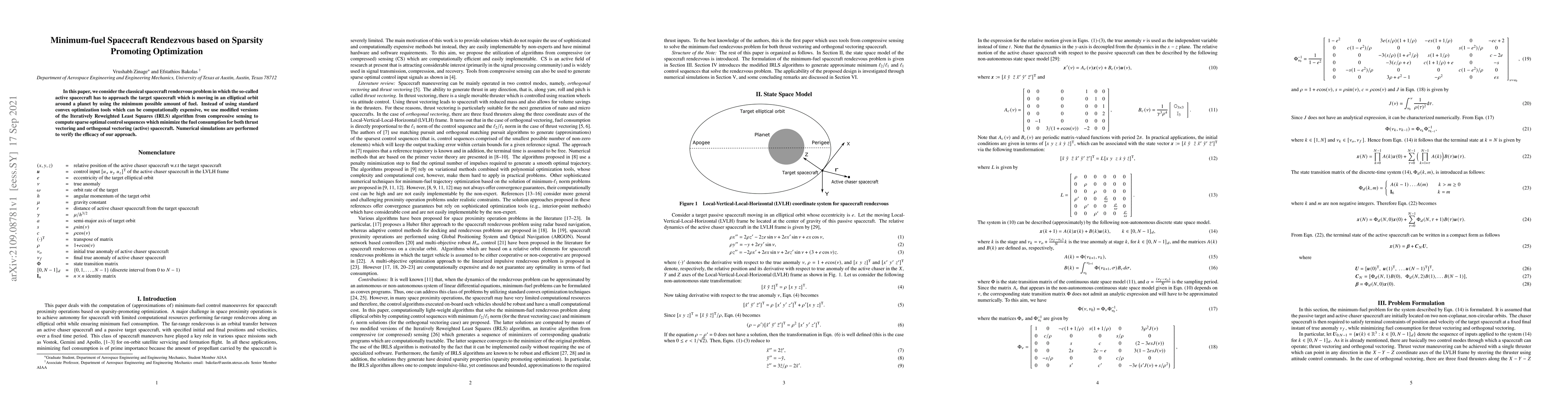 Researchers used a modified algorithm to optimize fuel consumption in spacecraft rendezvous, achieving more efficient trajectories with reduced fuel usage. Their approach uses sparse optimization techniques for thrust vectoring and orthogonal vectoring, promising improvements over traditional methods.