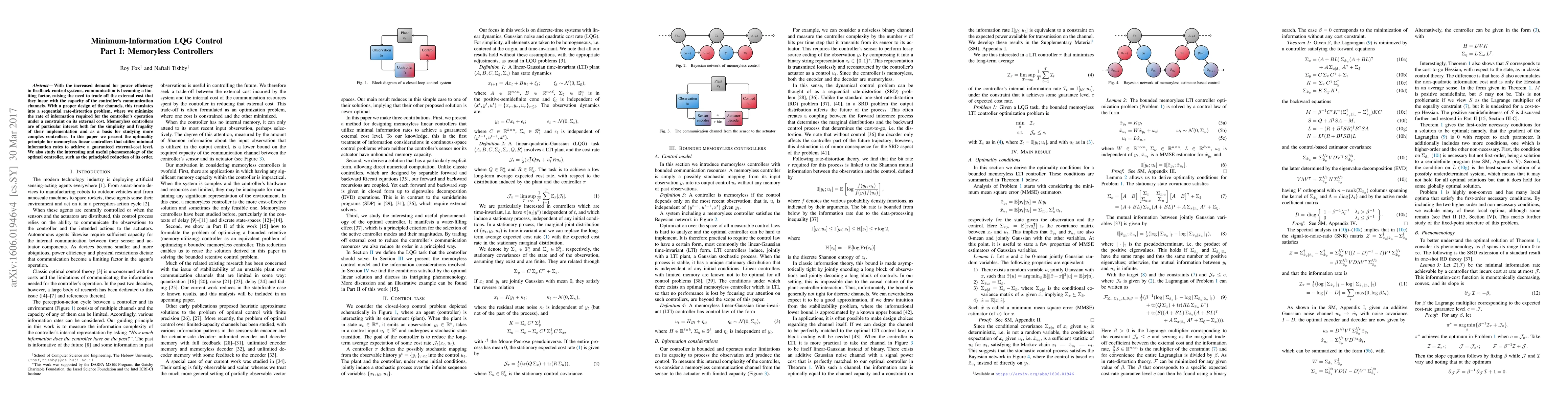 This paper explores the design of memoryless linear controllers that minimize information rates while maintaining a controlled external cost, addressing the challenge of power efficiency in feedback-control systems. It establishes an optimality principle for these controllers and investigates their optimal phenomenology, including a reduction in controller order.